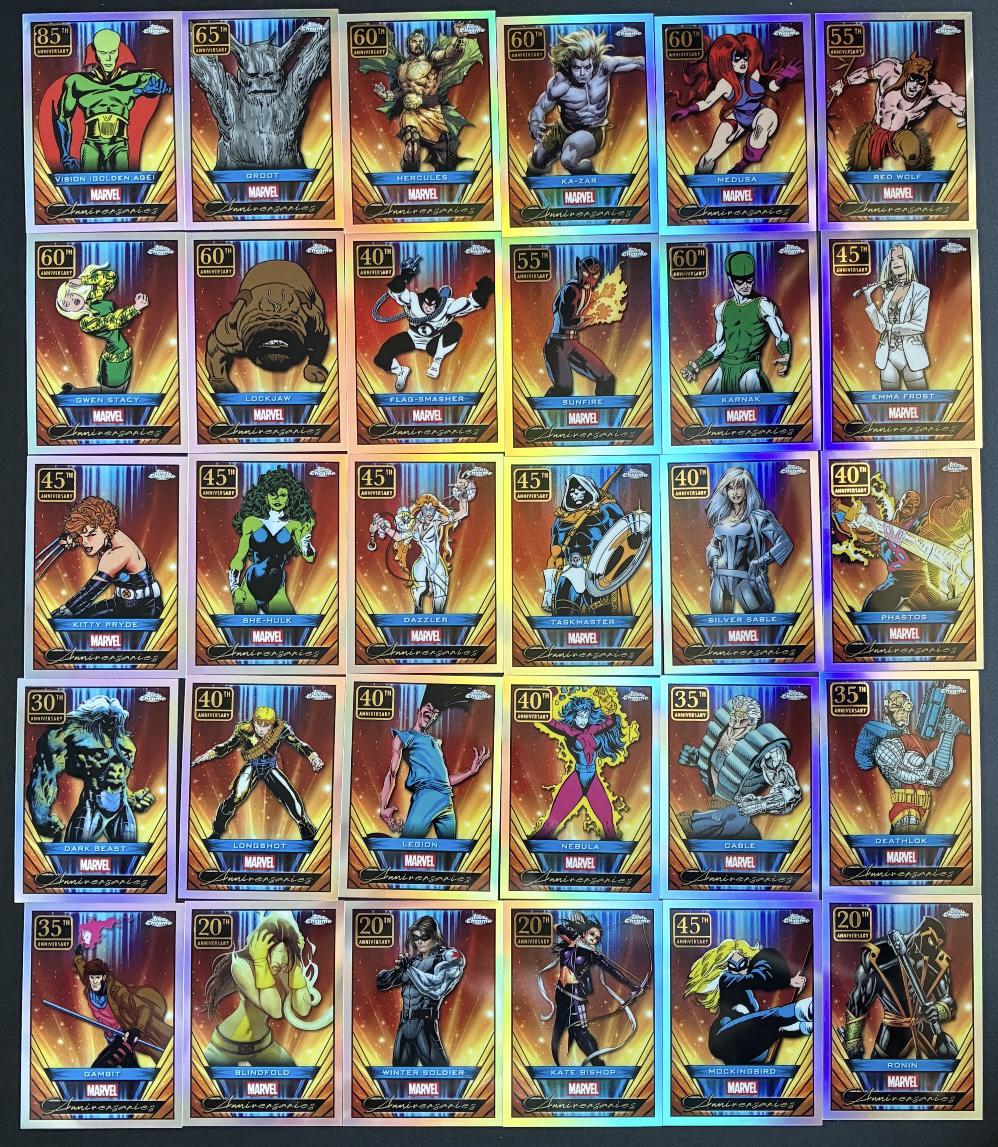 2025 Topps Marvel (MCU) 漫威 Chrome 幻视 黄金时代 格鲁特 赫拉克勒斯 大力神 美杜莎 女浩克 卡扎尔 红狼 太阳火 星云 冬兵 冬日战士等 漫威周年纪念银折 30张套