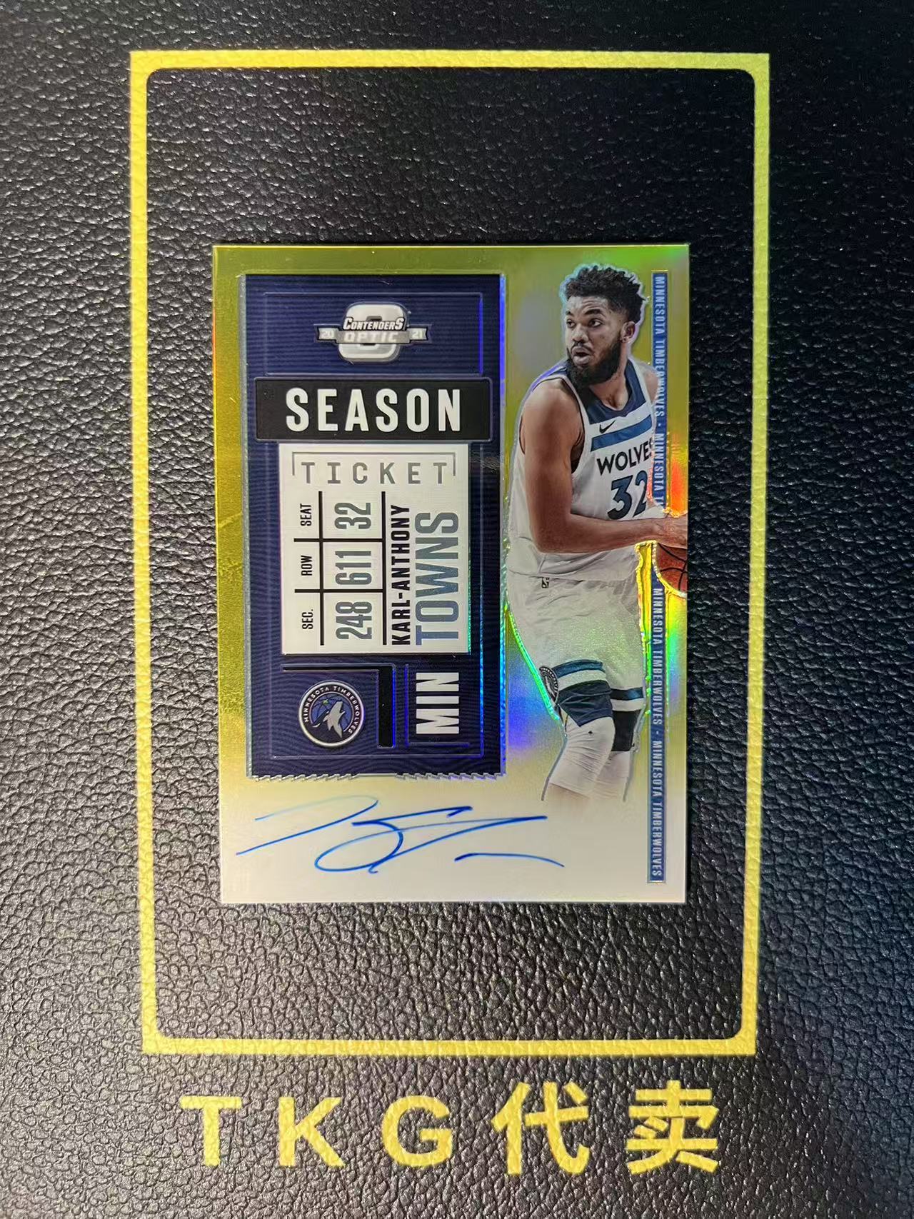 2020-21 Panini Contenders Optic Karl Anthony Towns 【TKG代卖】CGang 唐斯 尼克斯 球票 op折射 金折 09/10编 卡签 签字 瑕疵如图