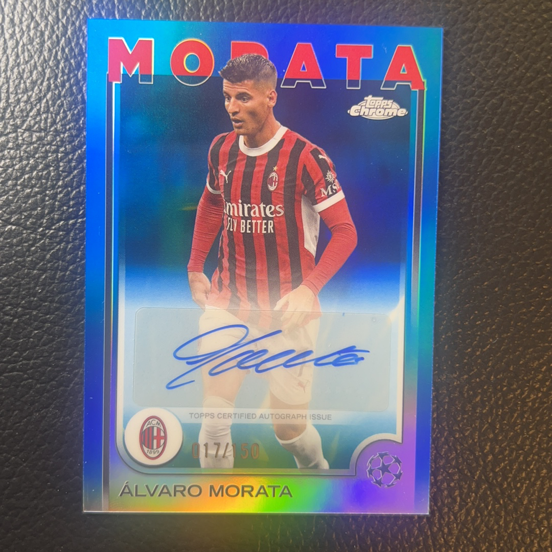 2025 Topps Chrome Alvaro Morata 欧冠TC AC米兰 西班牙 莫拉塔 150编 蓝折 签字 皇马 切尔西 马竞 欧洲杯冠军 卡品如图 -SY9117