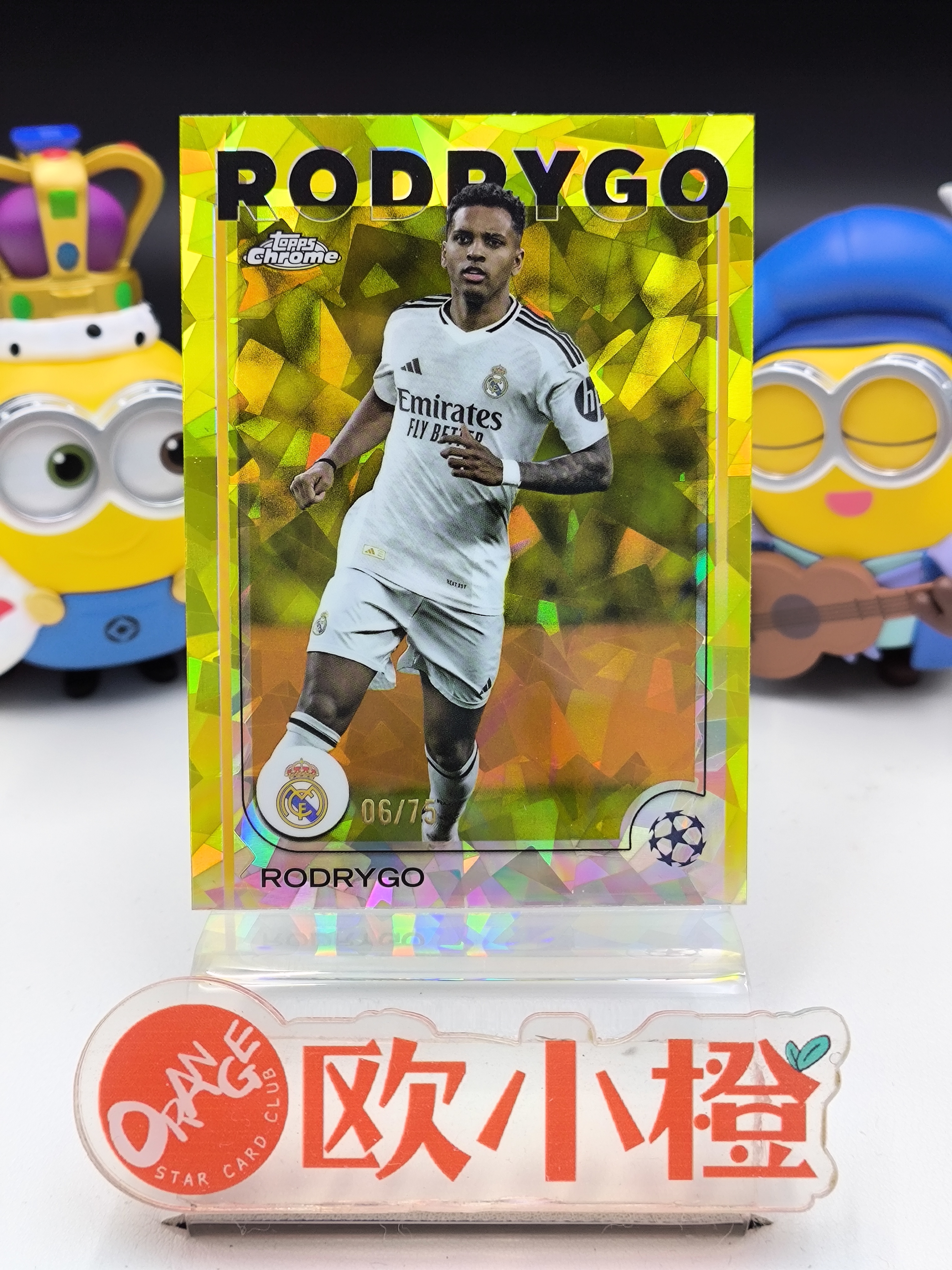 2025 【欧小橙急速拍】 Topps Chrome Rodrygo 欧冠TC 蓝宝石 皇家马德里 罗德里戈 06/75编 黄碎冰折 细节如图 收藏必备棍-XJY