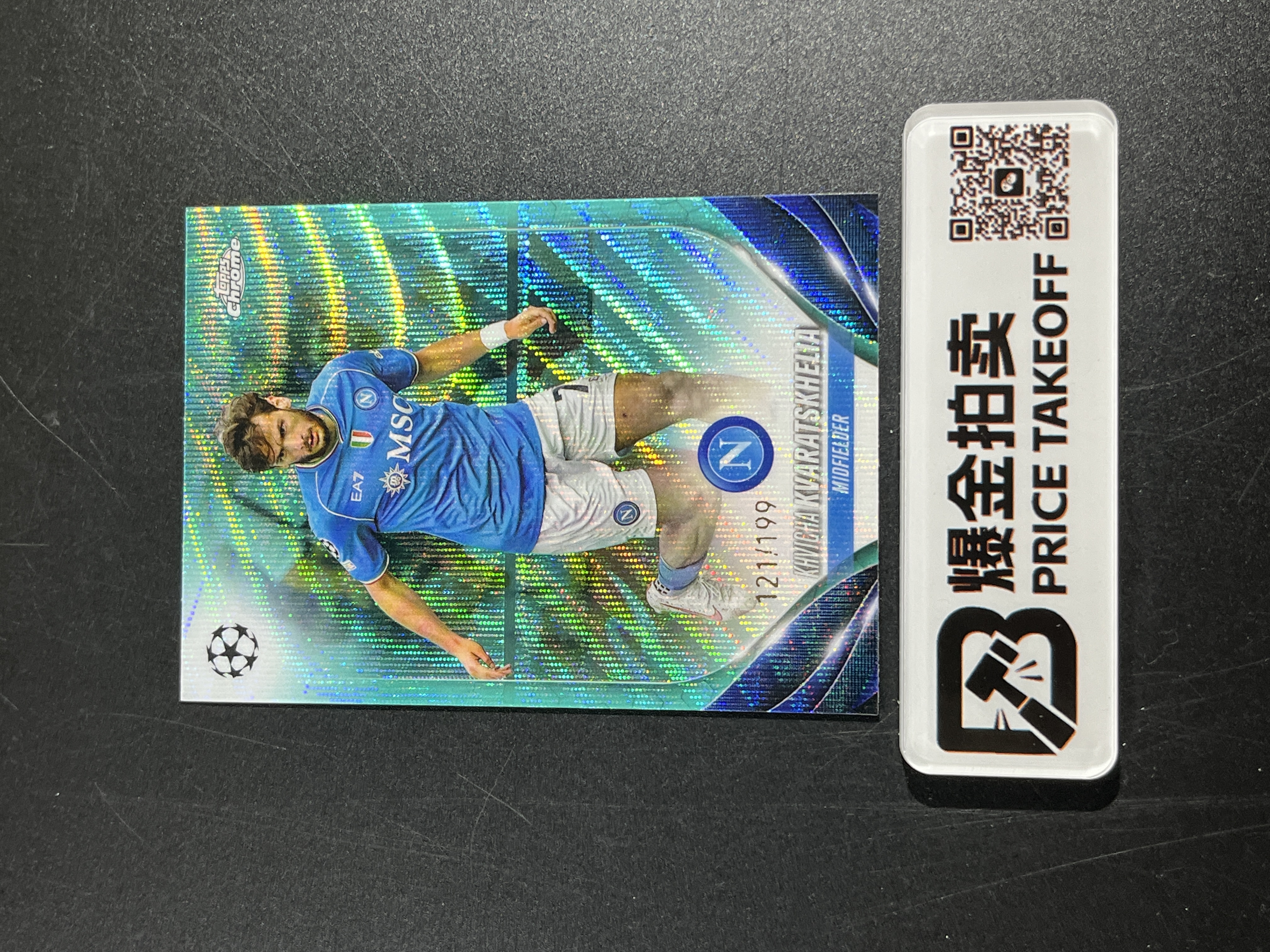【爆金拍卖】K85 2024 topps chrome TC khvicha kvaratskhelia 科瓦拉茨赫利 那不勒斯 青波纹折 199编 瑕疵如图 圜