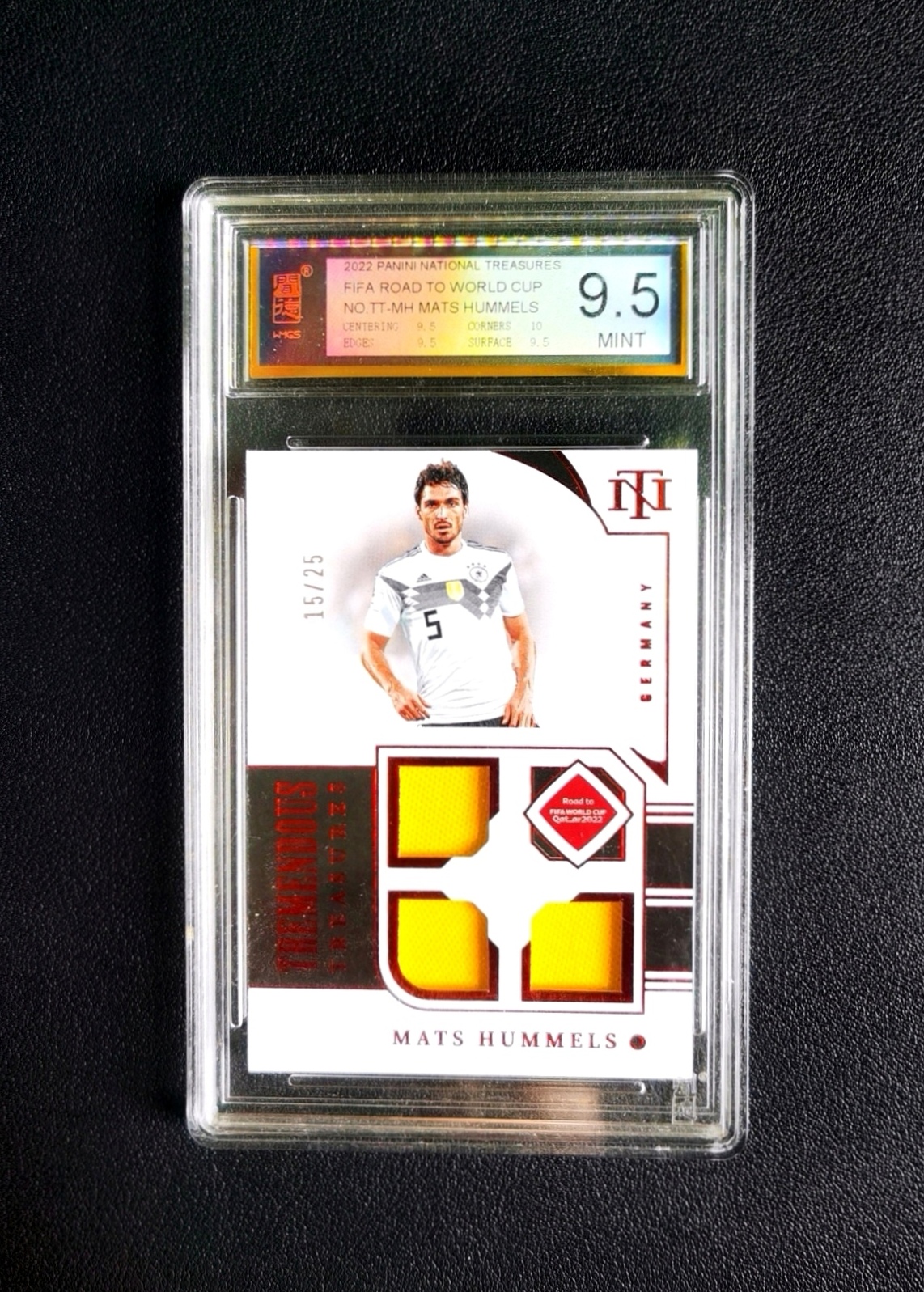 2022 Panini National Treasures Mats Hummels 世界杯 国宝 拜仁 德国 胡梅尔斯 15/25编 三窗 落场🔥球衣 物料 切割 红平行 9.5分评级卡【A1】