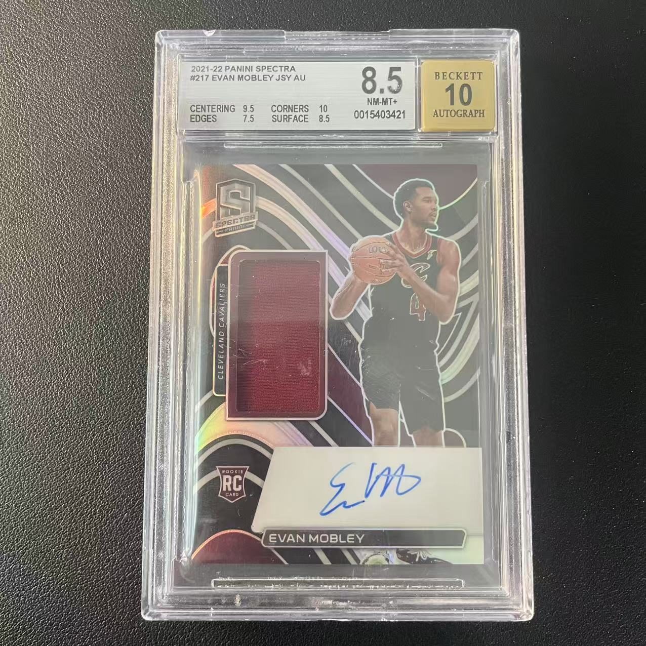 2021-22 Panini Spectra Evan Mobley RC 【哆咪拍卖】光谱 埃文 莫布利 骑士 /149编 新秀 年 卡签 签字 RJA 球衣物料 折射 BGS评级 金标8.5+10