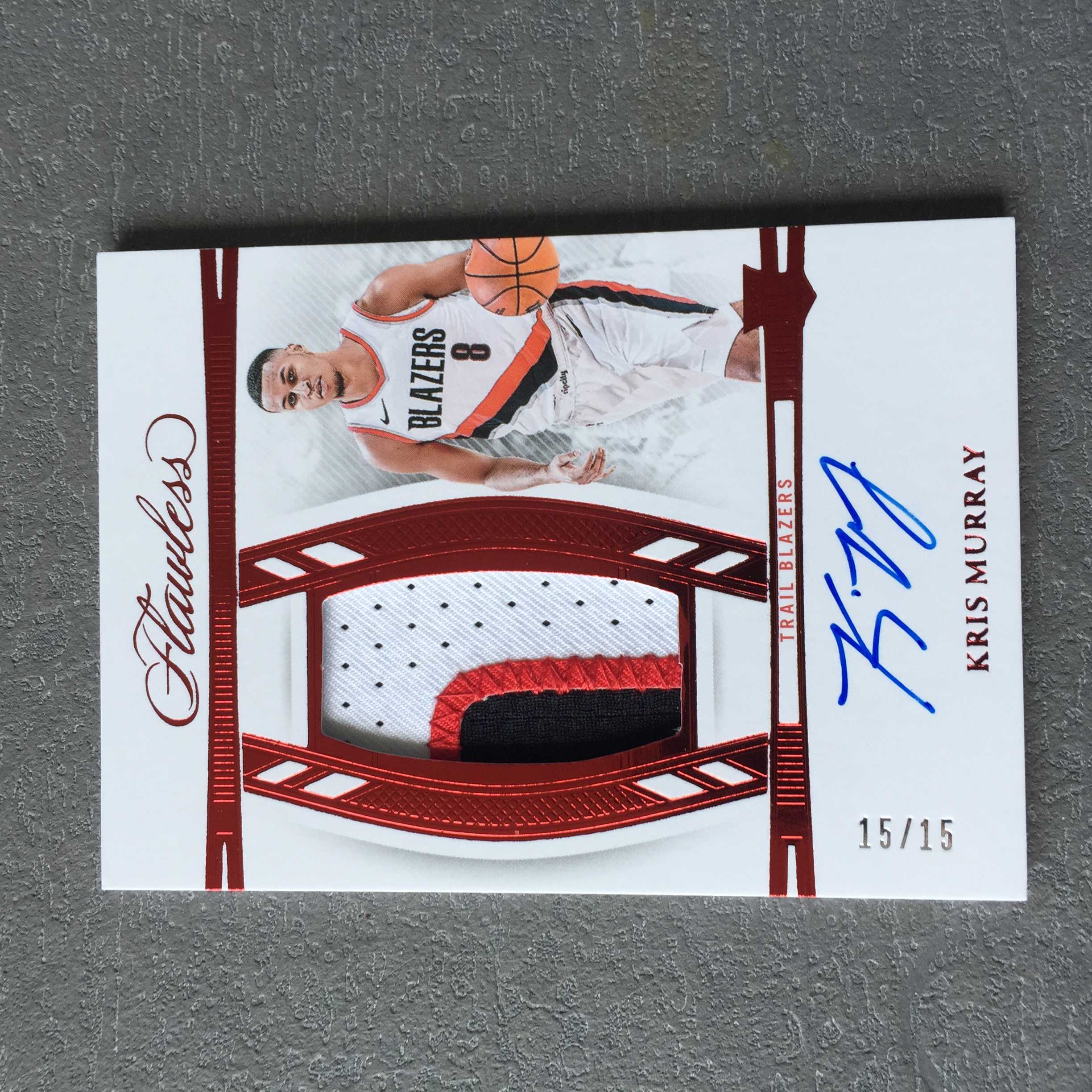 【小饼,预付85%】克里斯 默里 2023-24 帕尼尼手提FLAWLESS 限量/15编尾编15/15 开拓者新秀RPA 红版 PATCH补丁球衣实物 签名签字 卡签 划痕 R5G654