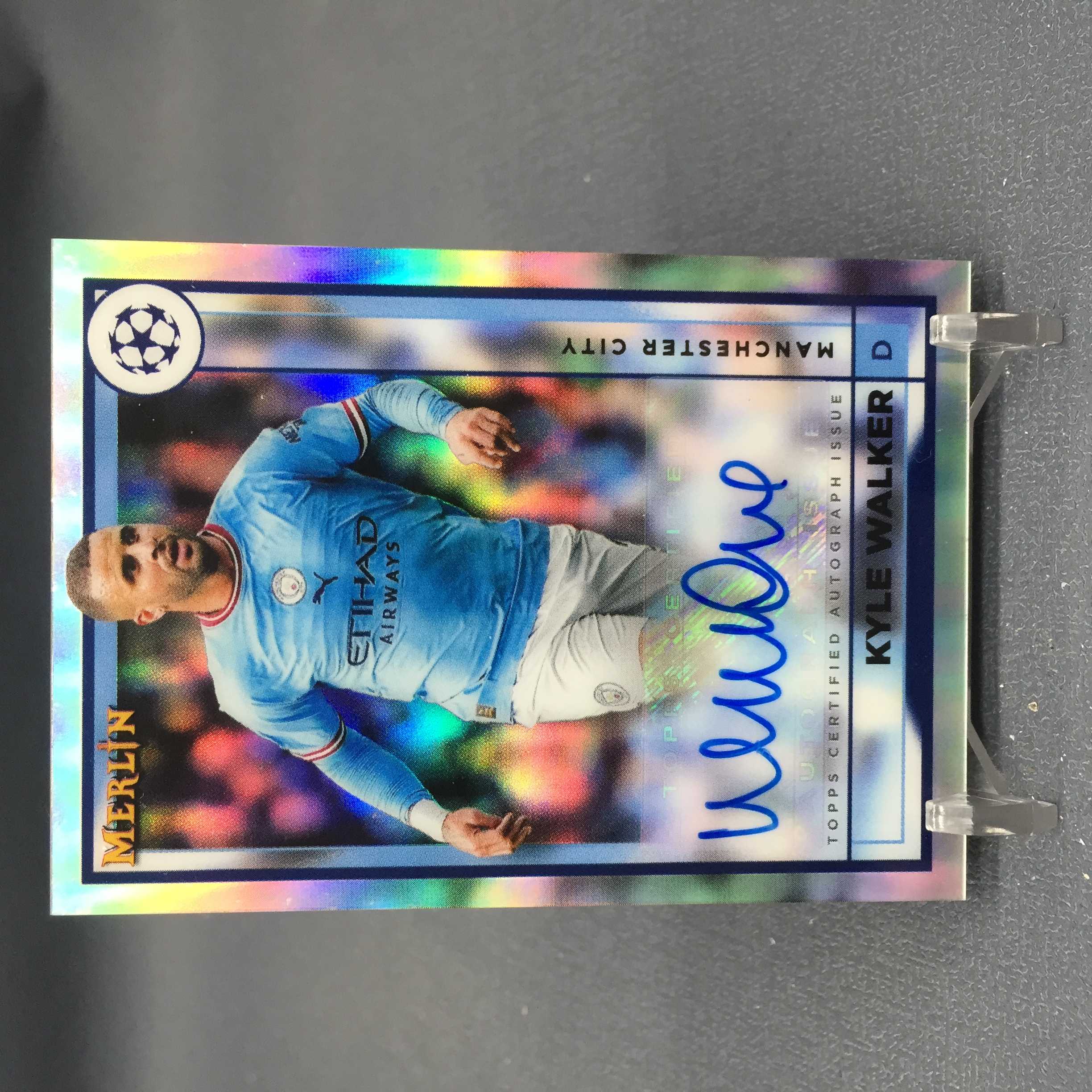 【小饼,预付85%】凯尔 沃克 Kyle Walker 2023 Topps Merlin 梅林 银折 签字签名 墨迹蓝且完整 曼城 小凹及角白 X3B308