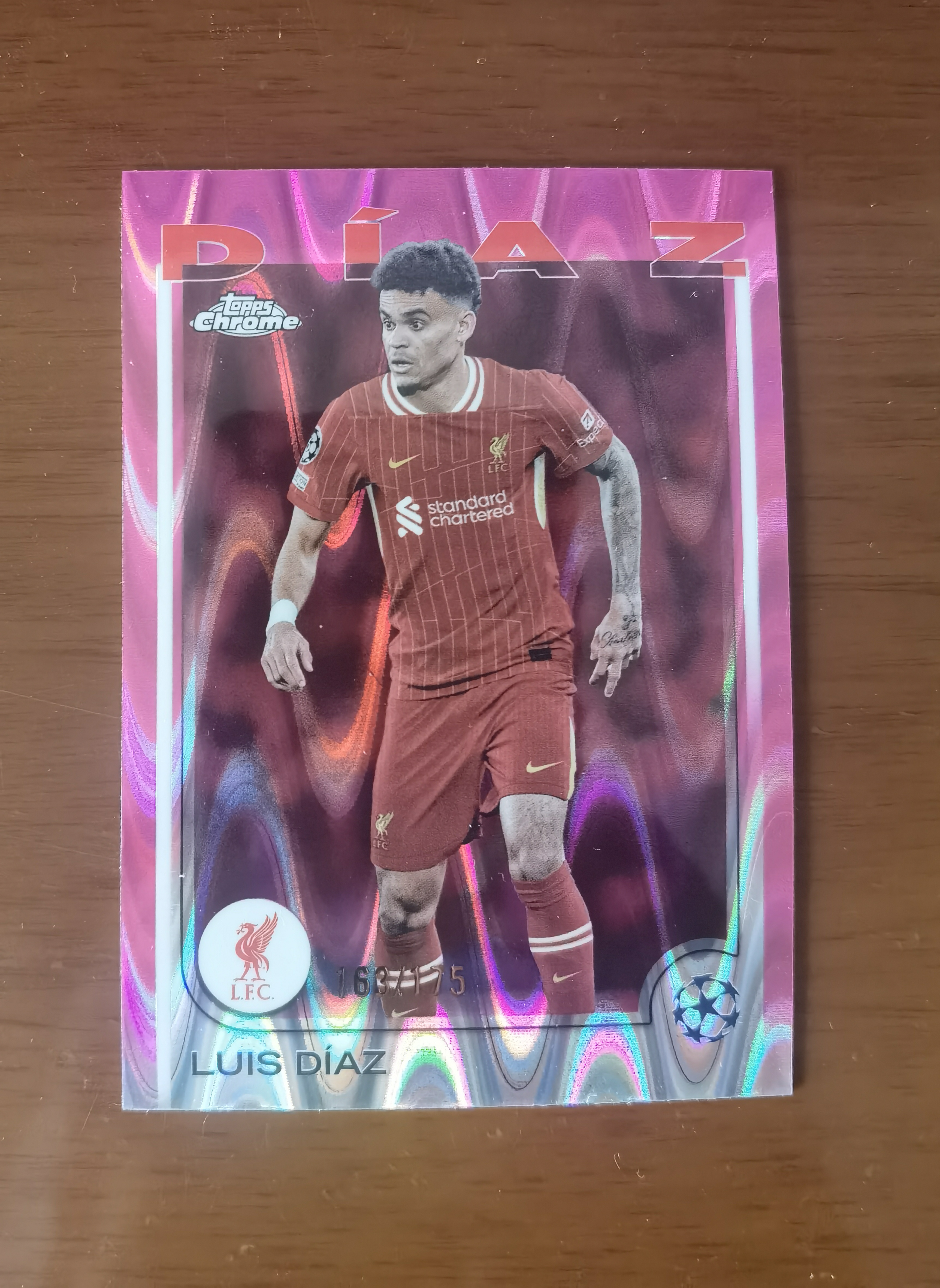 2025 Topps Chrome luis diaz 欧冠 TC 利物浦 路易斯 迪亚斯 粉波纹折射 175编 限量 收藏必备