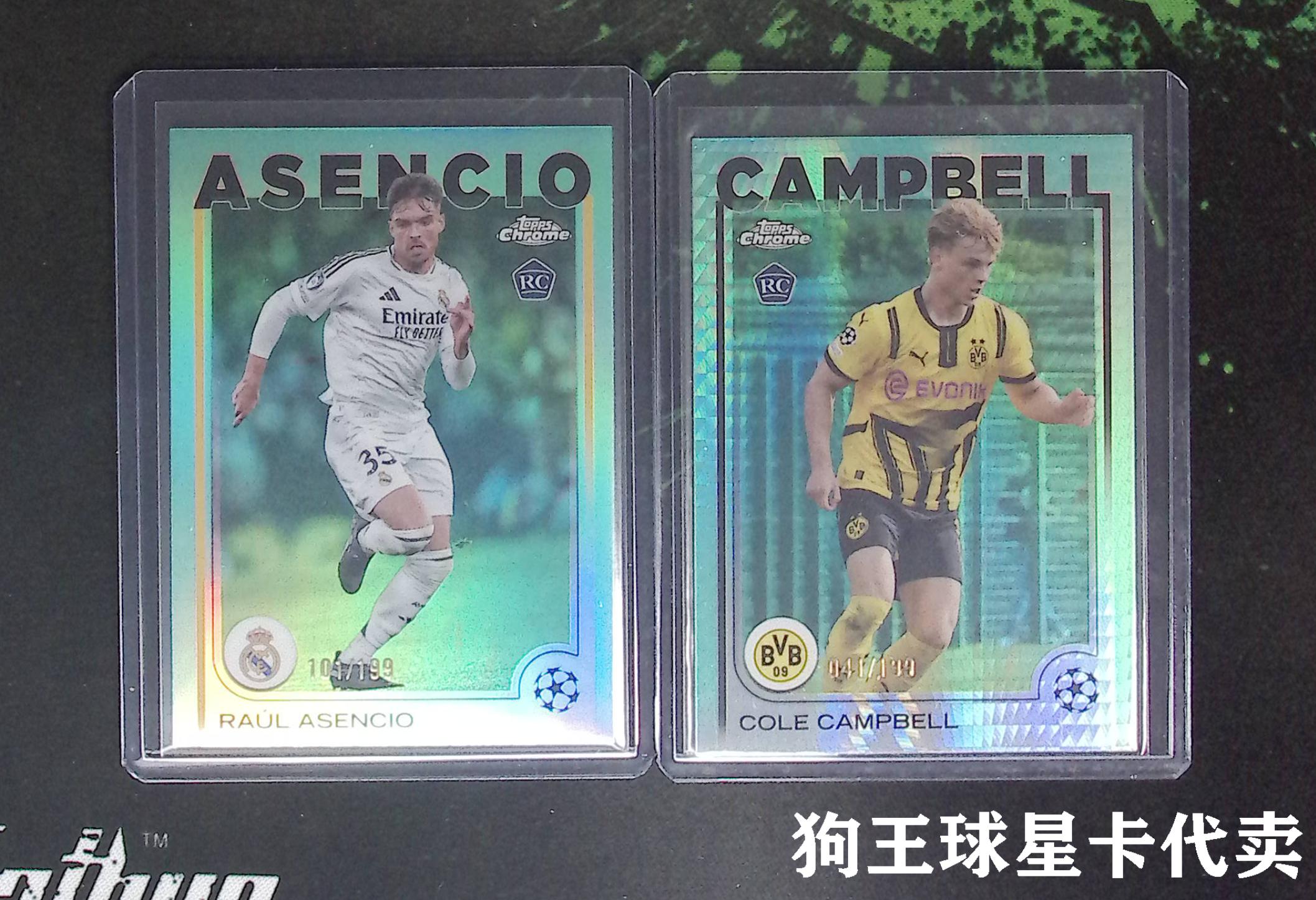 【狗王代卖】2024-25 Topps 欧冠 Chrome 青折 青棱镜折 199编 新秀 RC 皇家马德里 劳尔阿森西奥 多特蒙德 科尔坎贝尔 2张一标lot 兔子 G70