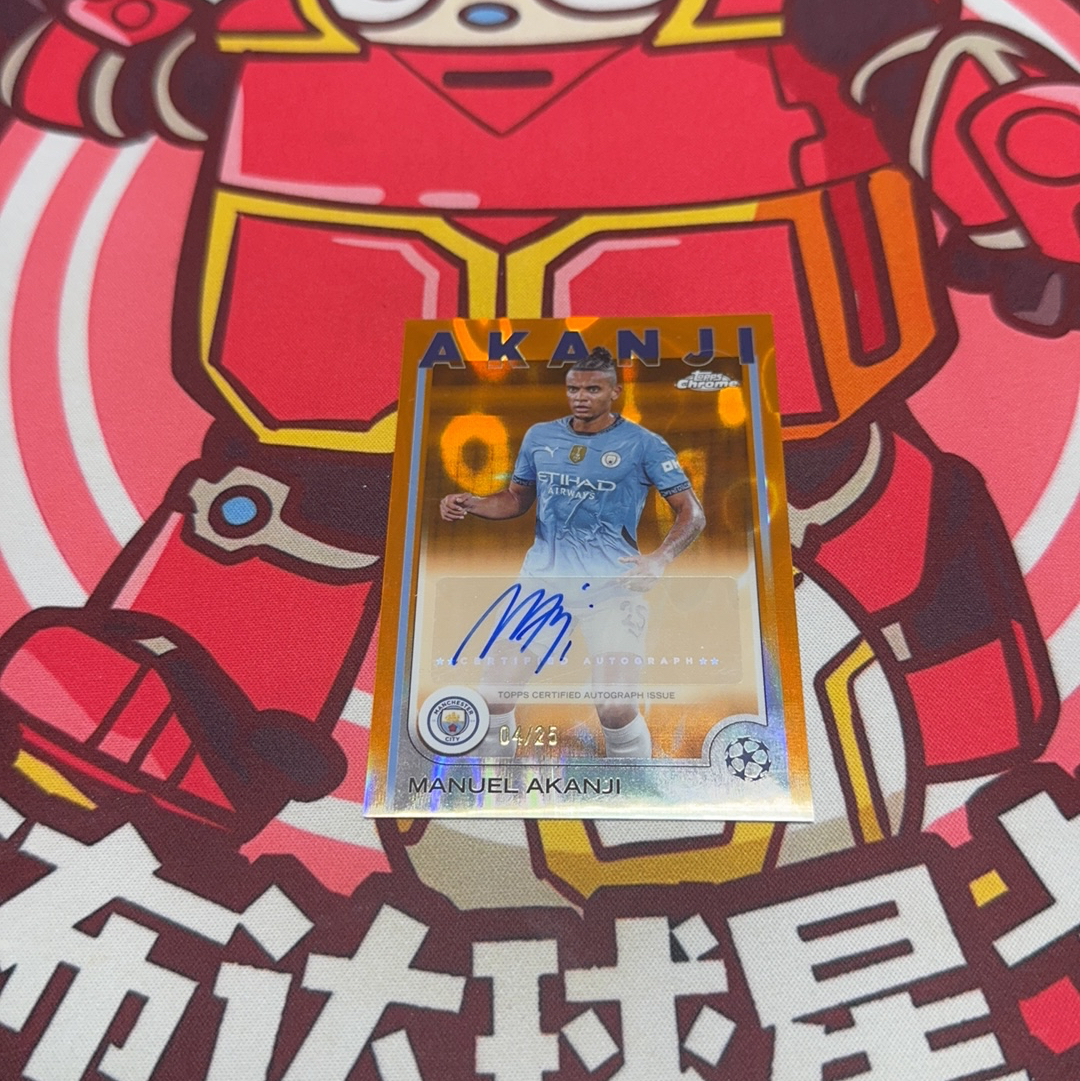 2024-25 Topps Chrome Manuel Akanji 欧冠TC 阿坎吉 25编 橙熔岩折 签字 曼城 完美签字了收藏必备