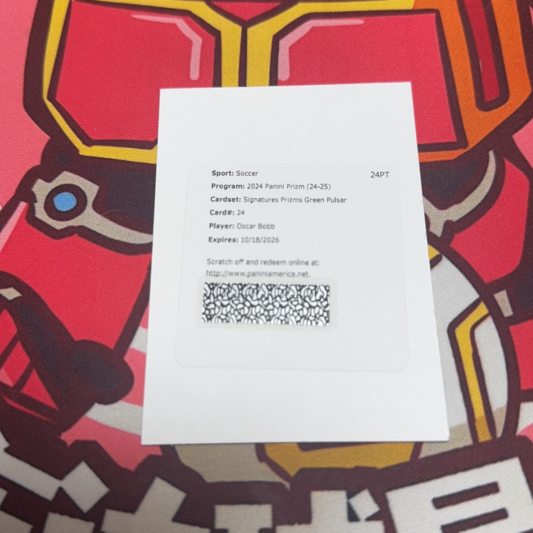 2024-25 Panini Prizm Oscar Bobb 英超PZ 曼城 奥斯卡 鲍勃 签字 交换版 绿脉冲 签字 投资收藏必备