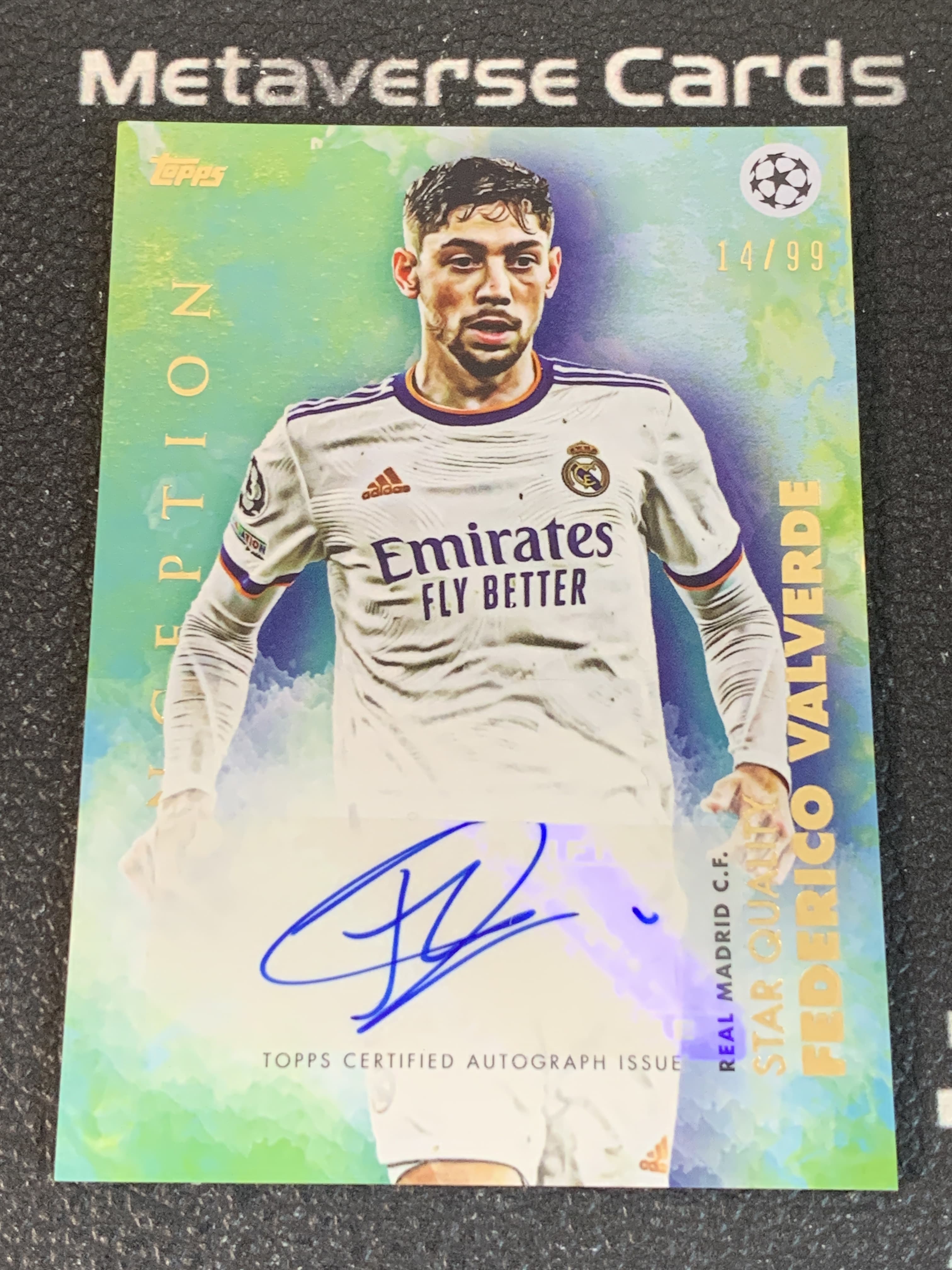 【元宇宙拍卖】K4-016:2021-22 Topps Inception Federico Valverde 皇马 乌拉圭 巴尔韦德 欧冠盗梦空间 限量 绿平行 绿折 签字 签名 14/99 微瑕如图
