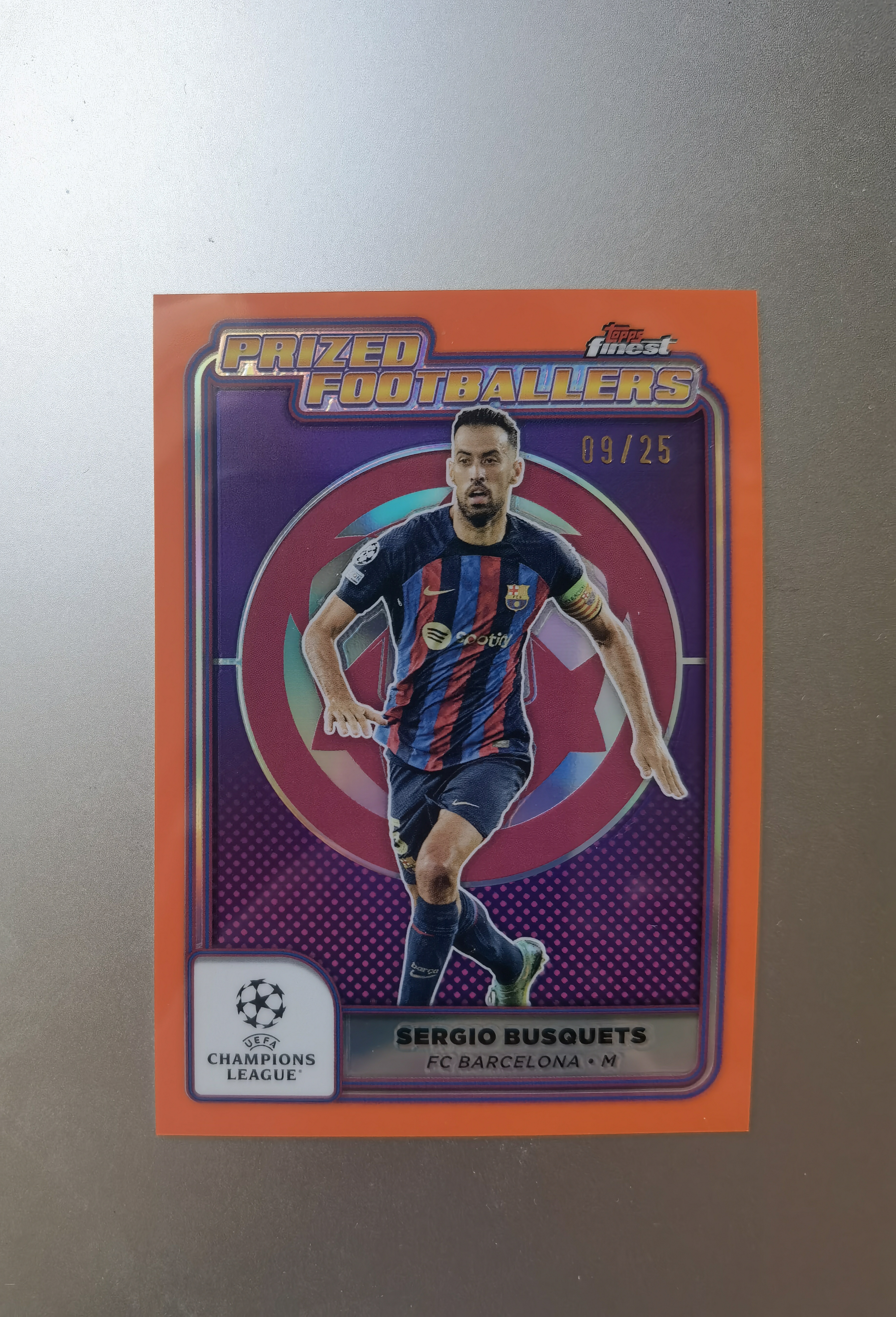 2025 Topps finest Sergio Busquets 欧战 塞尔希奥 布斯克茨 巴塞罗那 橙折 25编 珍贵球员特卡 卡品如图 收藏佳品