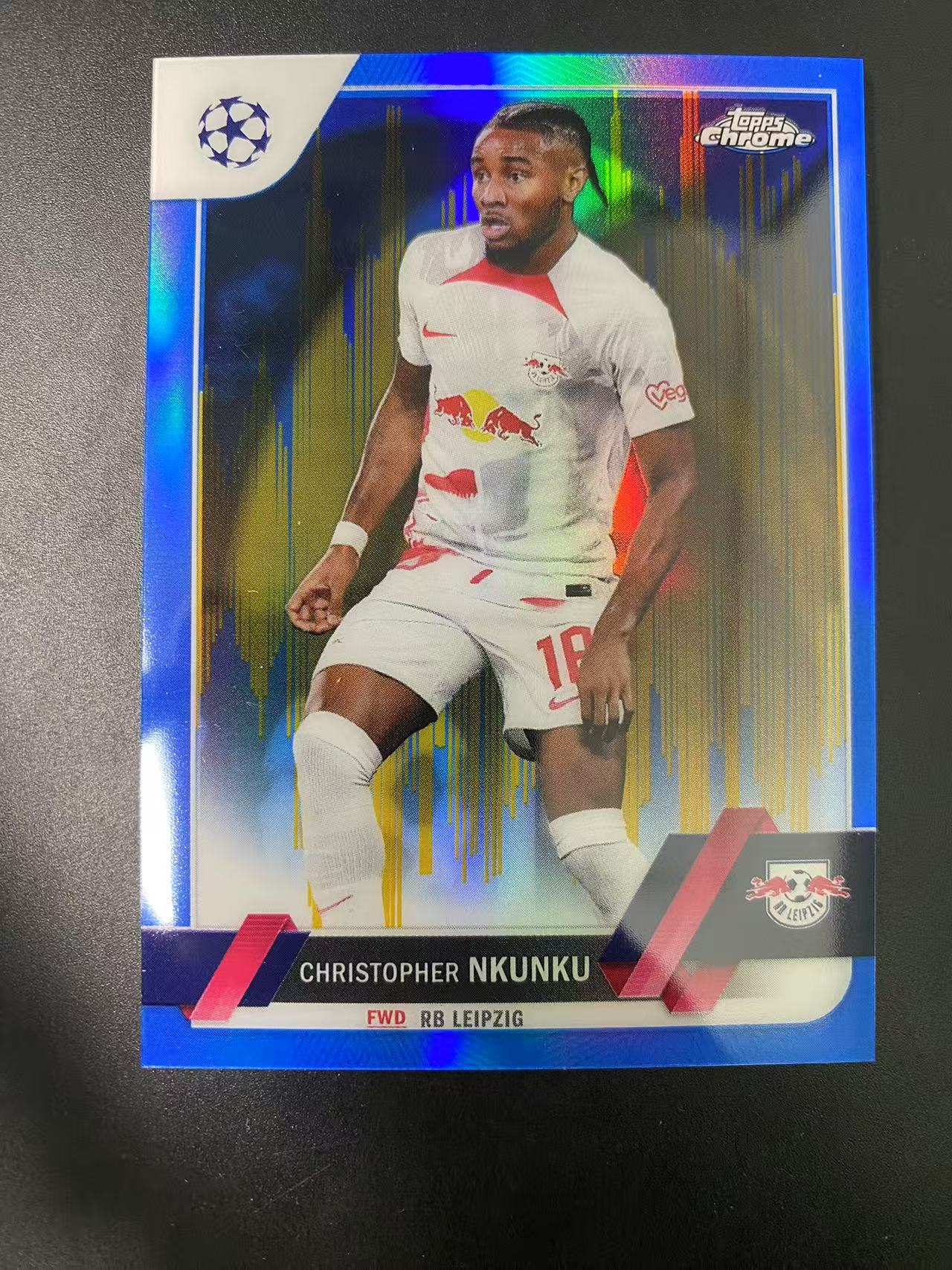 2023 Topps Chrome Christopher Nkunku 克里斯托弗 恩昆库 莱比锡红牛 切尔西 法国前锋 /75编 蓝地震折 卡品如图 院长