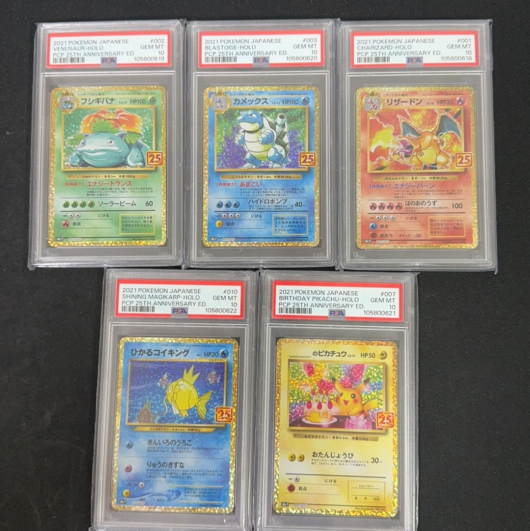 宝可梦 ptcg 日版 25周年 p卡 5张 psa10分 连号 收藏必备 连号难得 喷火龙 皮卡丘 妙蛙花 水箭龟 鲤鱼王 5张连号 B