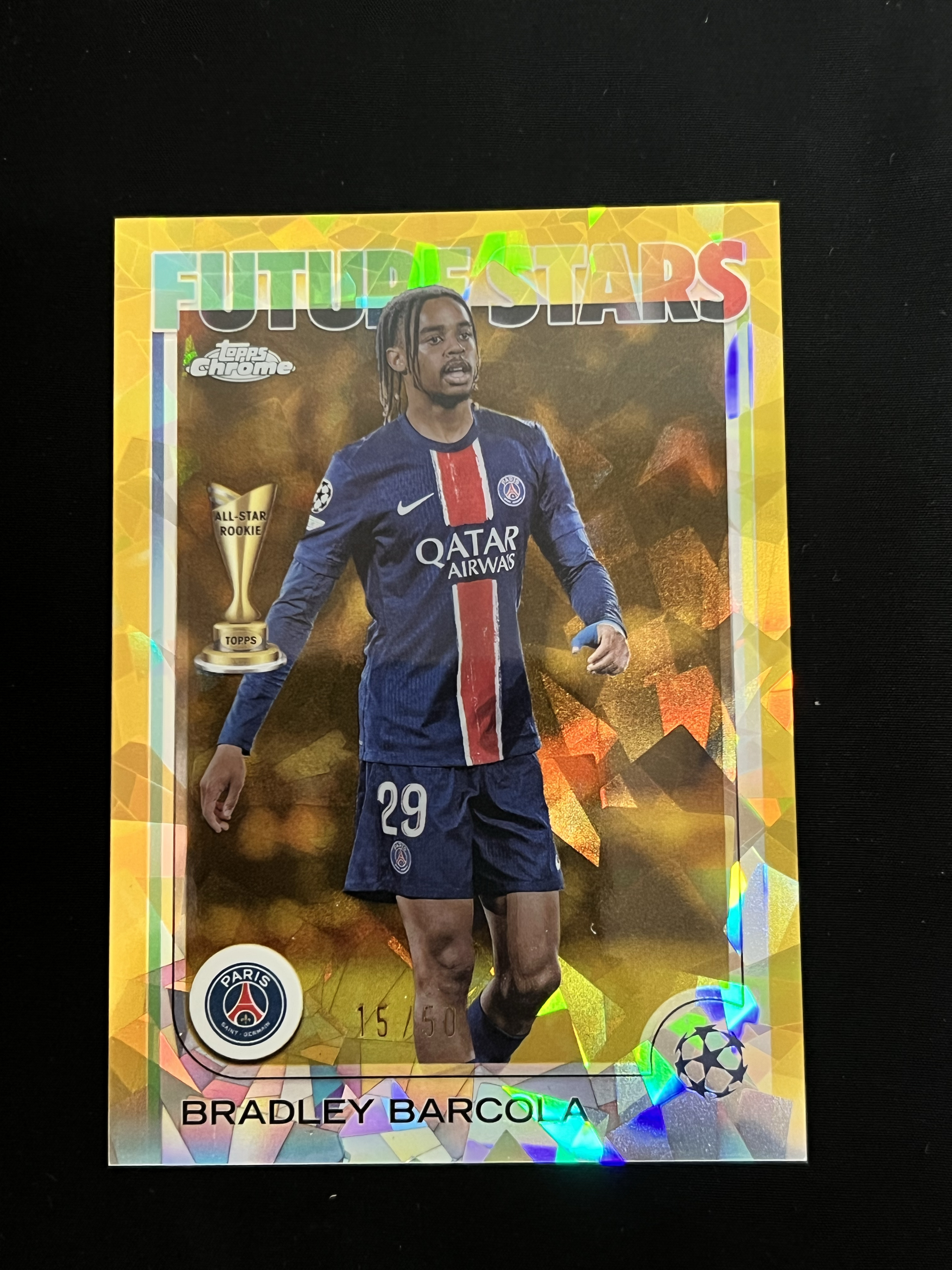 2025 TOPPS Chrome 蓝宝石 Bradley Barcola 布拉德利 巴尔科拉 大巴黎 金碎冰折 金宝石 50编 未来之星 特卡 收藏必备 jz
