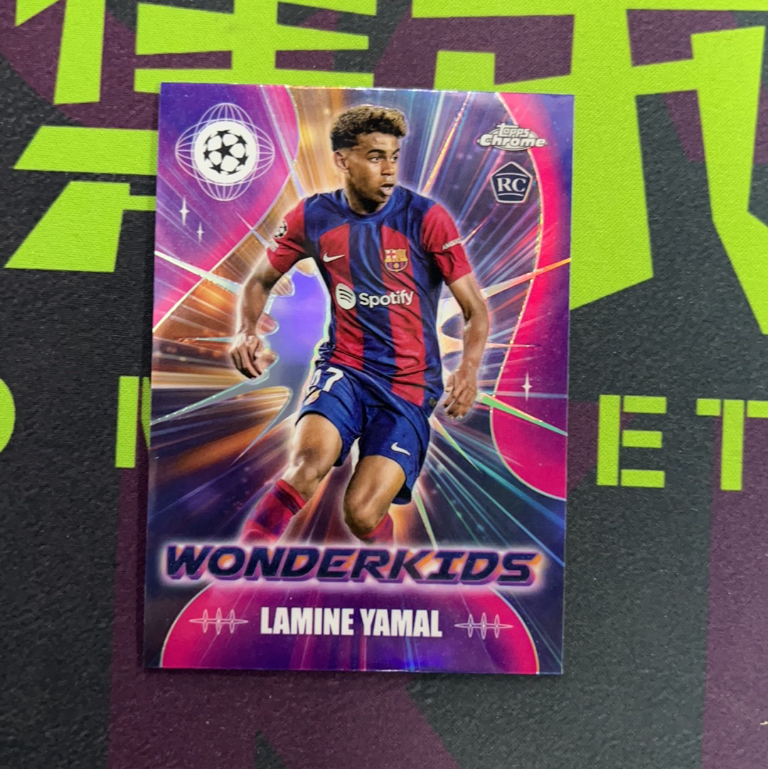 2023-24 Topps Chrome Lamine Yamal 巴塞罗那巴萨 亚马尔 西班牙 新一代球王 RC新秀 神奇小妖特卡银折 正面瑕疵如图【趣集卡拍卖070122】