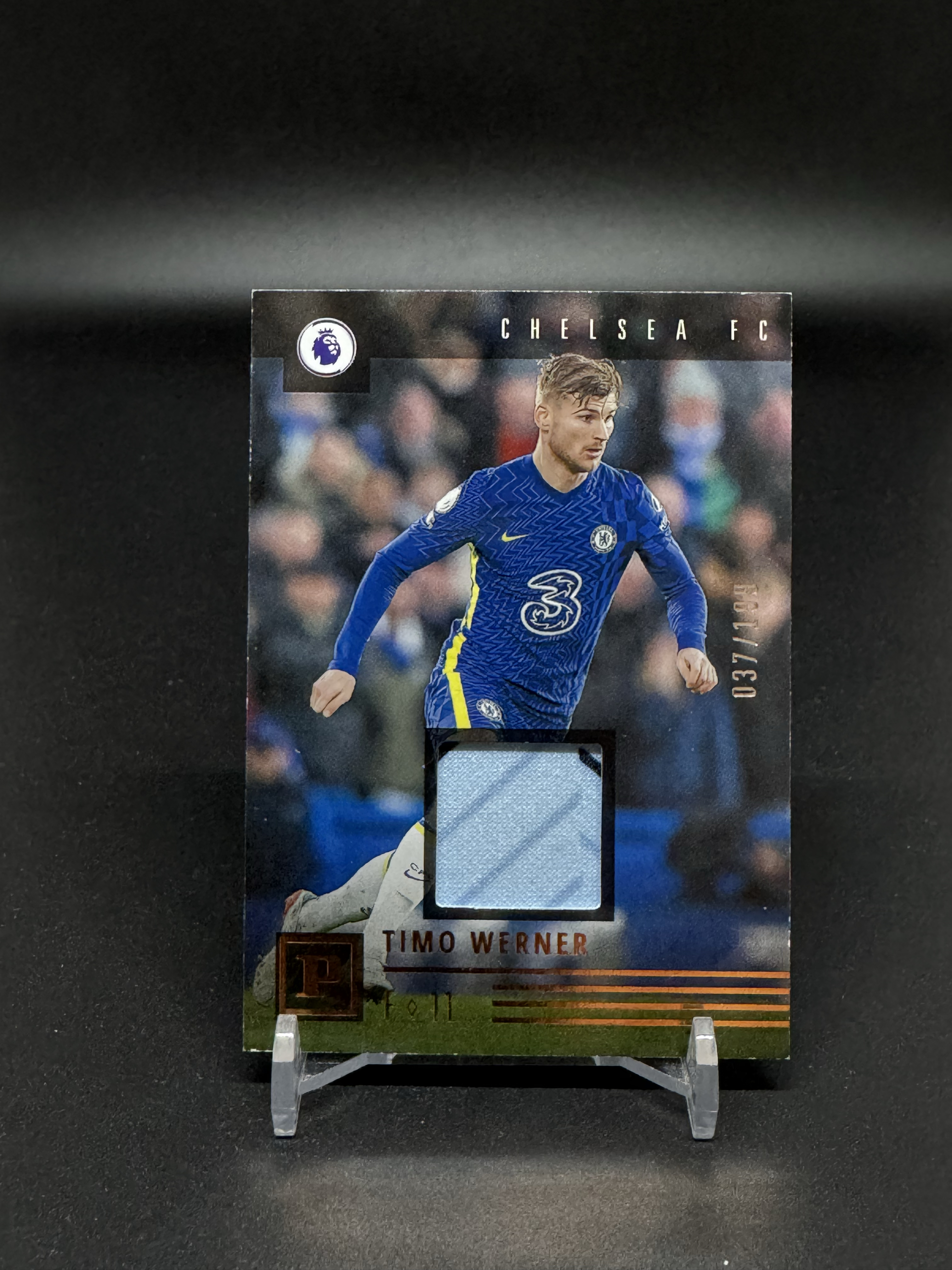 2021-22 Panini Chronicles Timo Werner 【蓉城拍卖】蒂莫 维尔纳 切尔西 37/199编 编年史 英超 物料 双色球衣切割 金色侦察机 热刺 白衣