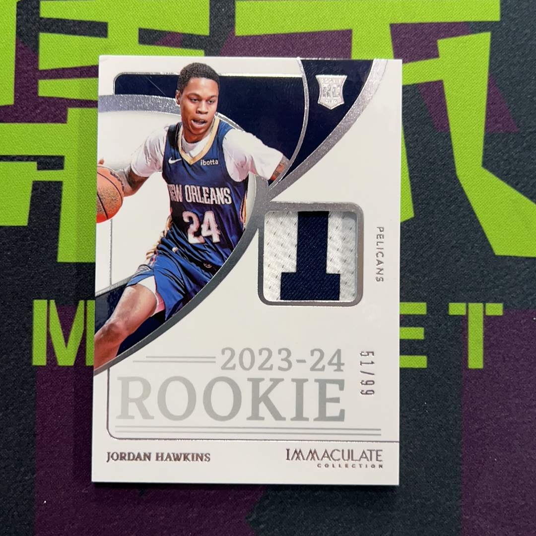 2023-24 Panini Immaculate Jordan Hawkins 新奥尔良鹈鹕 乔丹霍金斯 RC新秀 RP没有A 球衣物料切割 24/99编 正面瑕疵如图【趣集卡拍卖070126】