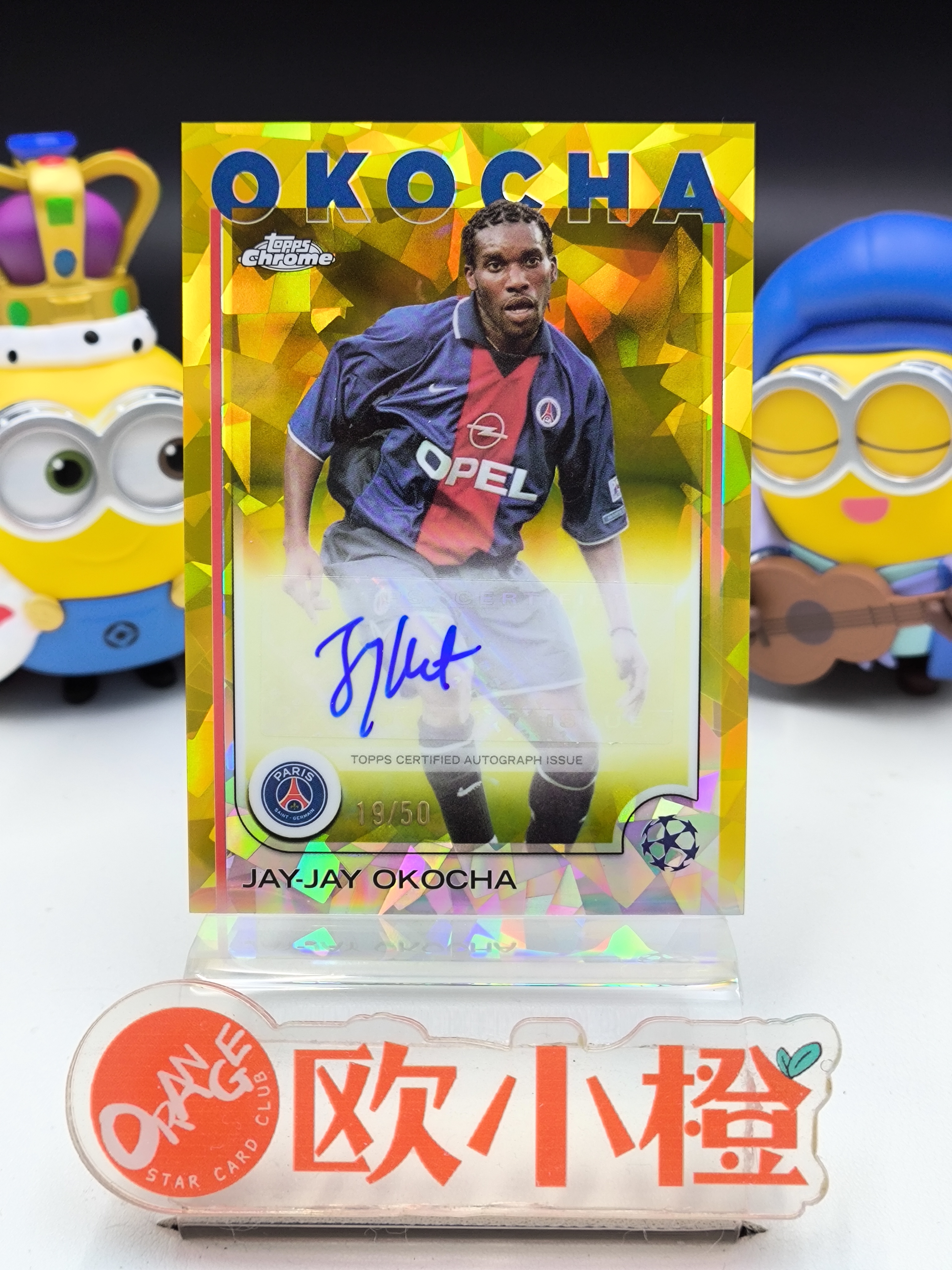 2025 【欧小橙急速拍】 topps chrome jay jay okocha 欧冠 蓝宝石 杰伊 杰伊 奥科查 大巴黎 签字 50编 金碎冰折 瑕疵如图 收藏必备煮-XJY8781