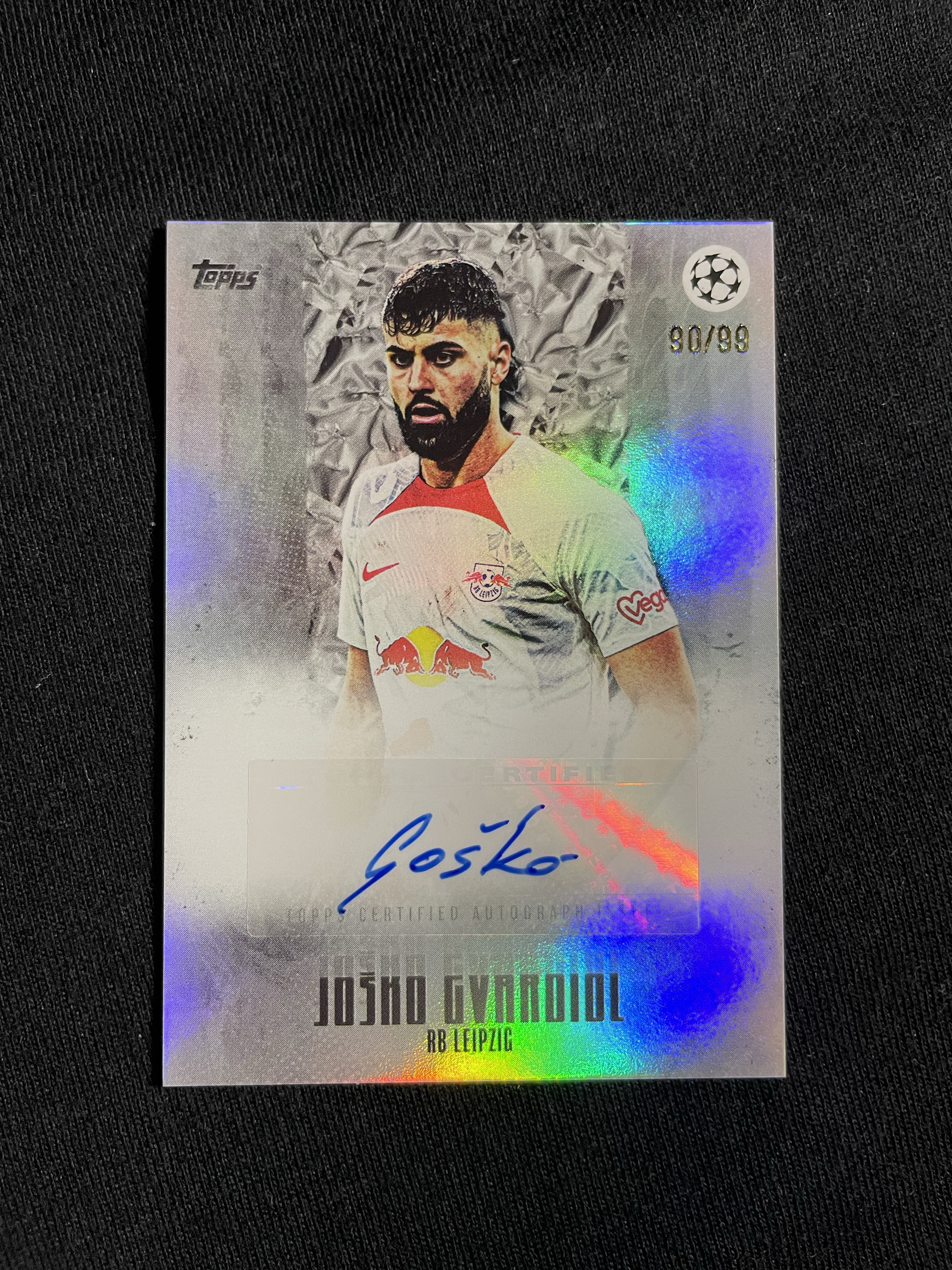 2023 Topps 穆夏拉白金盒 Josko Gvardiol 【苦茶子拍卖】格瓦迪奥尔 欧冠 99编 签字 银折 折射 RB莱比锡 曼城 克罗地亚 卡品如图