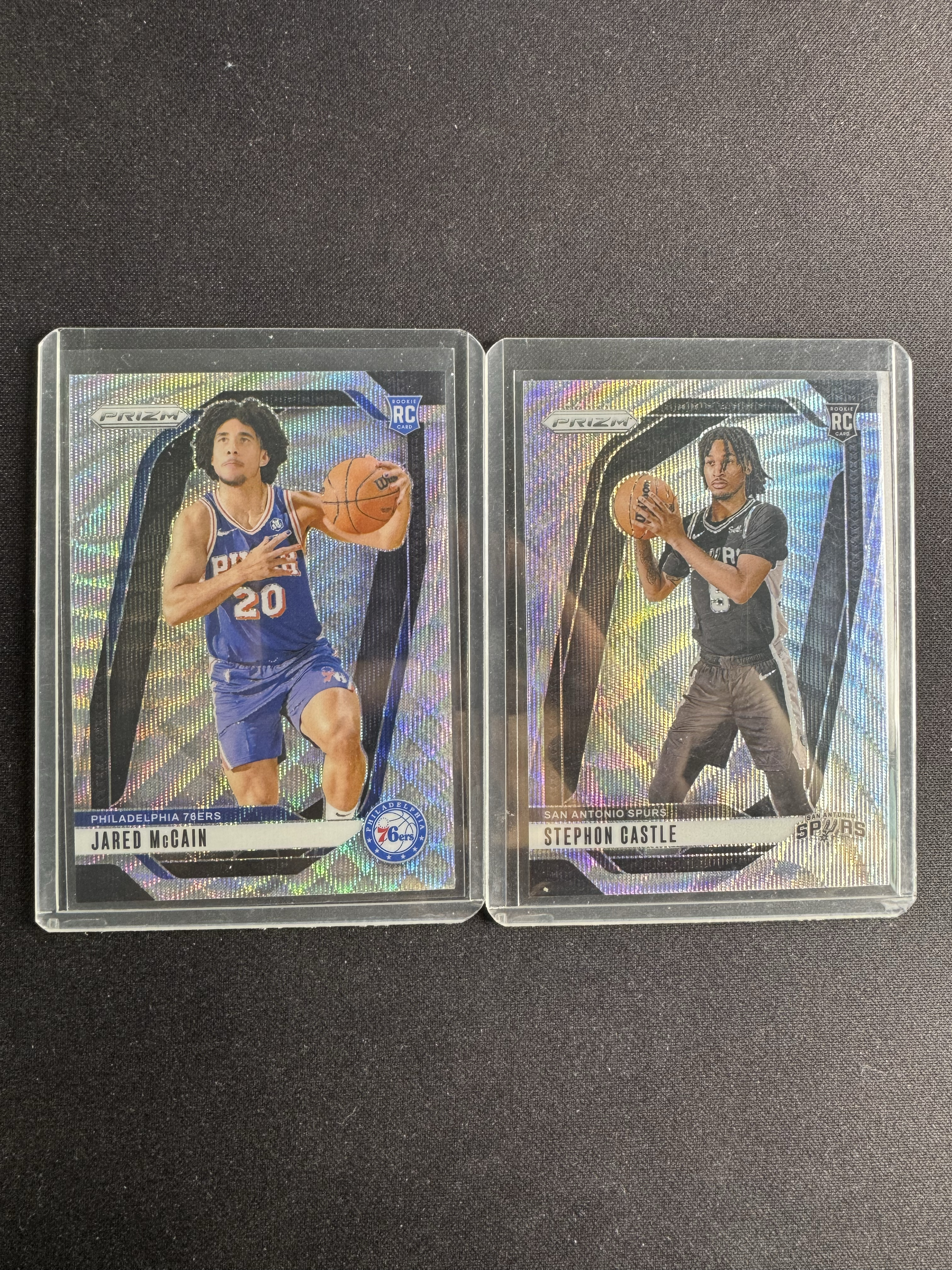 2024-25 Panini Prizm 76人 魔仙哥 麦凯恩 马刺 卡斯尔 RC 新秀 银波纹折 折射 大热新秀 专收收藏必备 2张lot打包