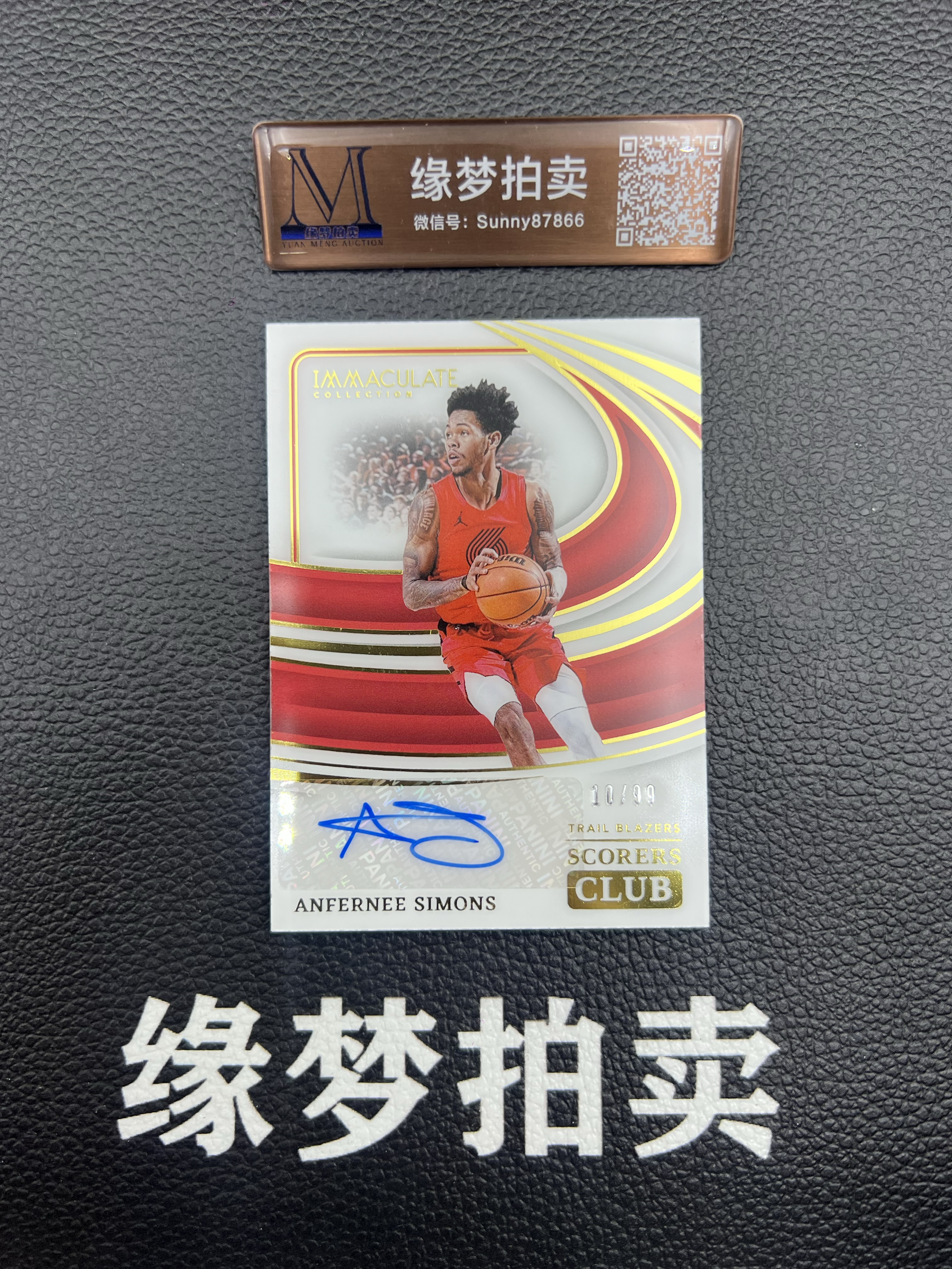 【缘梦拍卖】2023-24 Panini Immaculate Anfernee Simons 爱咪咪 开拓者 安芬尼 西蒙斯 签字 贴签 得分俱乐部 10/99编 卡品如图 ~树树