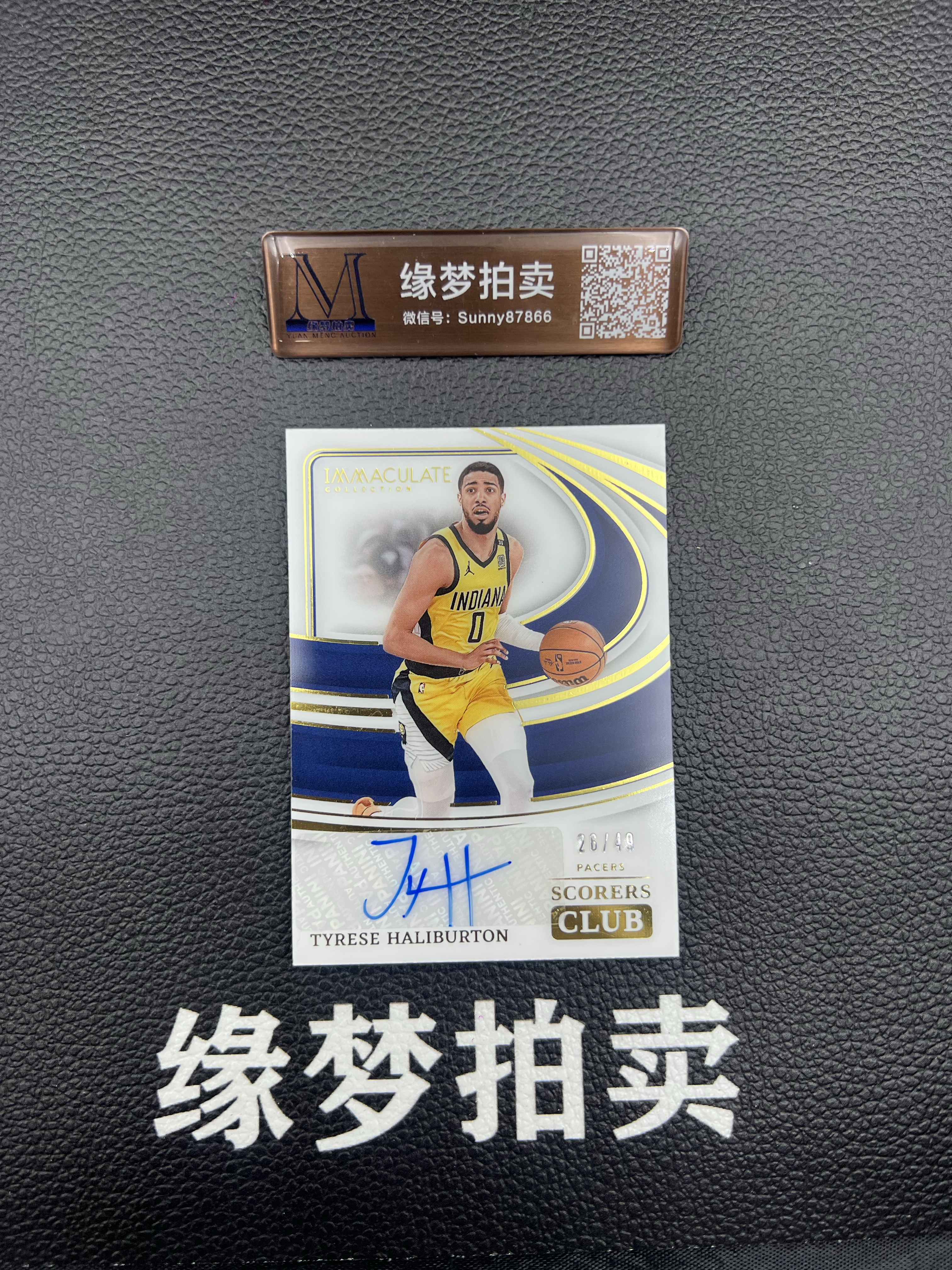 【缘梦拍卖】2023-24 Panini Immaculate Tyrese Haliburton 爱咪咪 步行者 哈利伯顿 哈里伯顿 26/49编 签字 得分俱乐部 收藏必备 ~树树