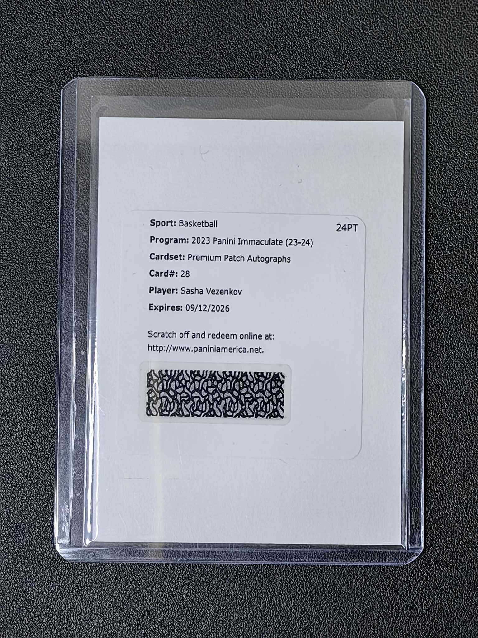 2023-24 Panini Immaculate Sasha Vezenkov RC 新秀 国王 萨沙 维琴科夫 50编 PPA 球衣 物料切割 imm 签字 卡签 交换板