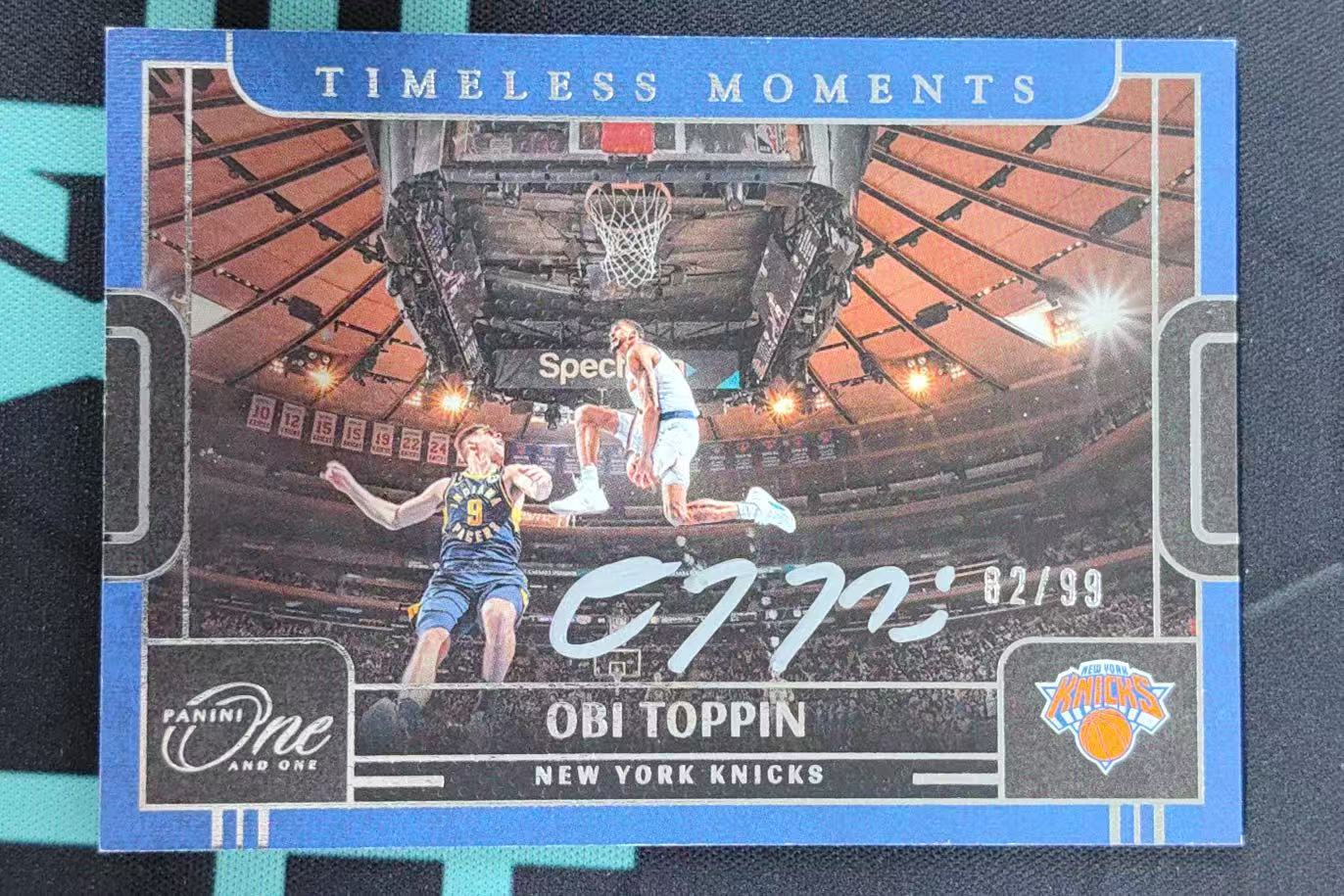 2022-23 Panini One and One Obi Toppin 【哆咪拍卖】OAO 奥比 托平 尼克斯 /99编 时刻签 银笔签 卡签 签字 MOMENTS 蓝平行 BGN鉴真卡品如图星人