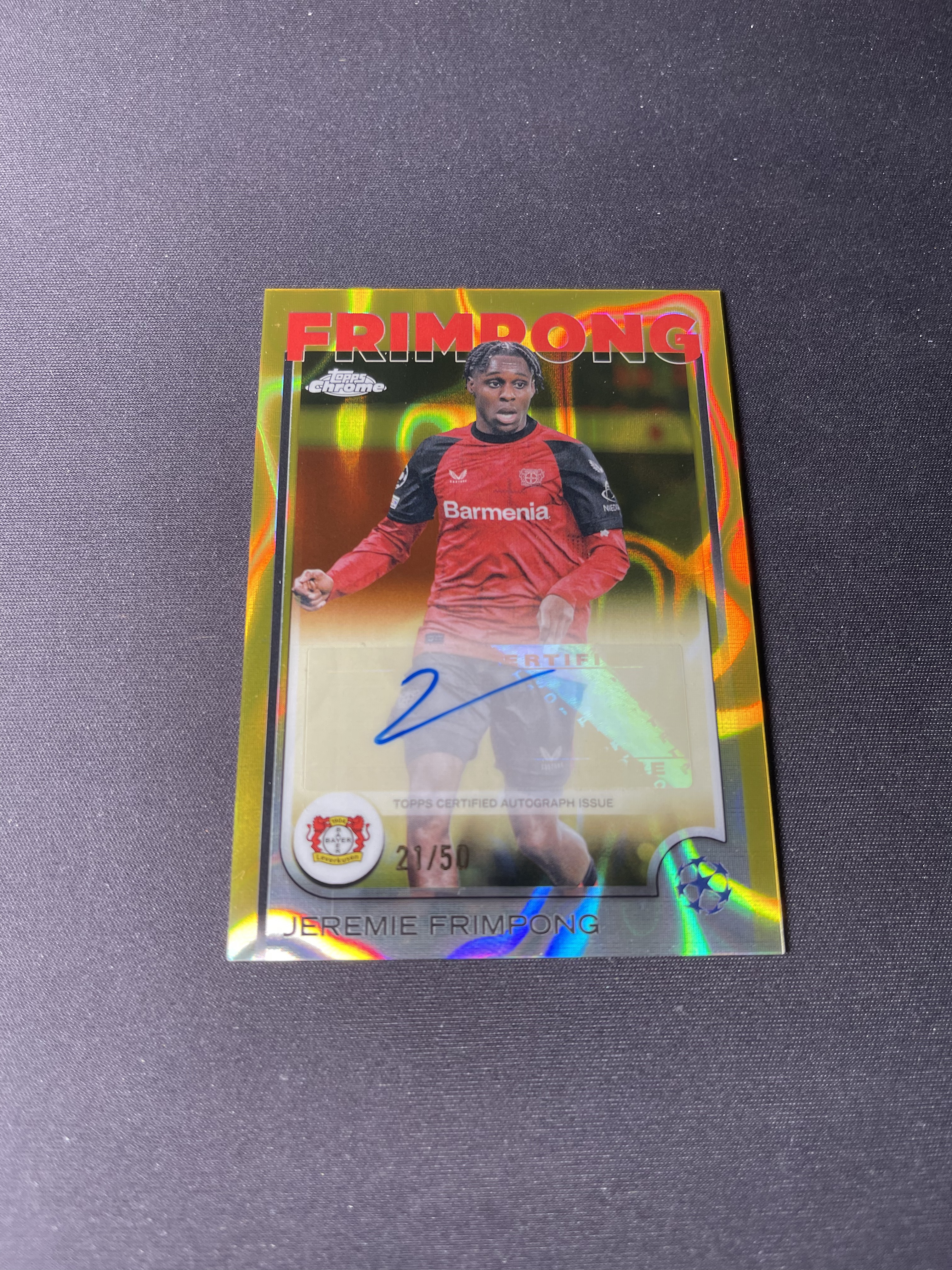 2024-25 Topps Chrome Jeremie Frimpong UCC 勒沃库森 杰里米弗林蓬 金熔岩折 签字 折射 21/50编 不累计「老夫子」tytony