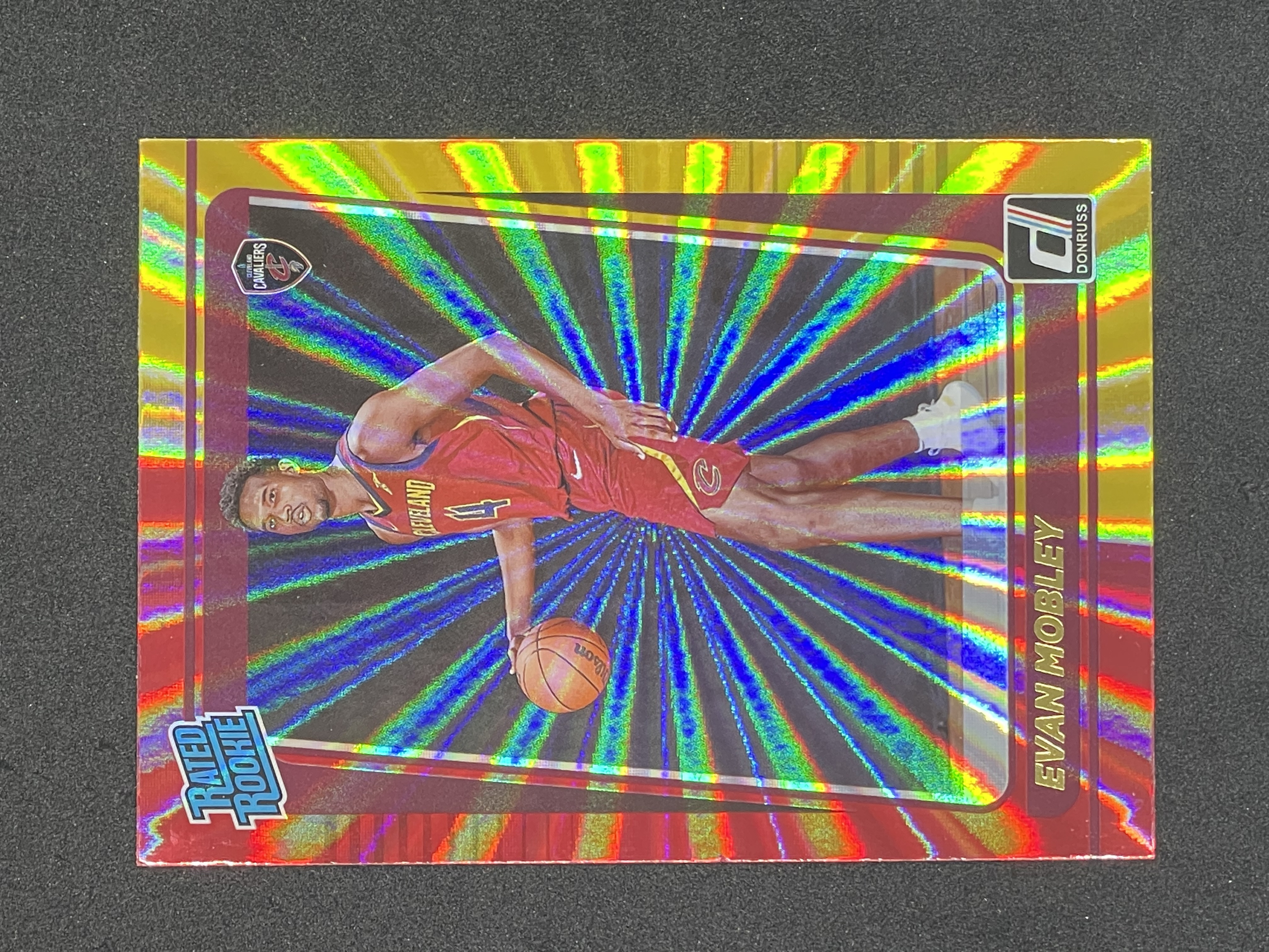 2021-22 Panini Donruss Evan Mobley RC 杜蕾斯「幼库拍卖」埃文 莫布利 莫布里 骑士 新秀 红金佛光折 折射 定妆照 卡品如图