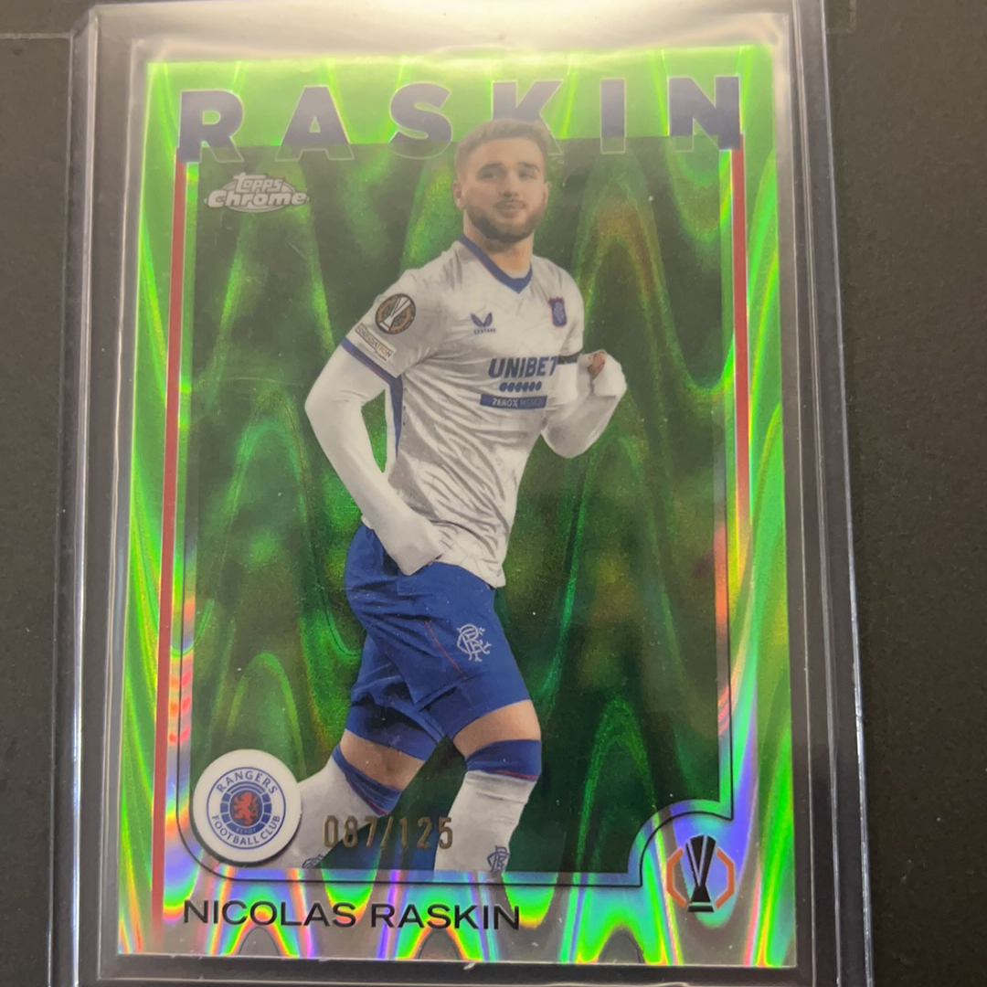 2024-25 Topps Chrome nicolas raskin 欧冠 tc 流浪者 拉斯金 125编 绿波纹 绿折卡品如图