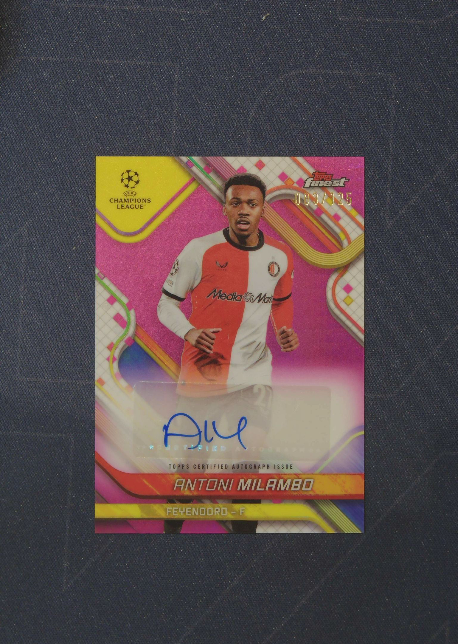 【CU代卖】2024-25 Topps Finest Antoni Milambo 欧战 欧冠 安东尼 米兰博 费耶诺德 签字 荷兰 粉棱镜折 hyper折 折射 083/125编 图三细节 眼镜1