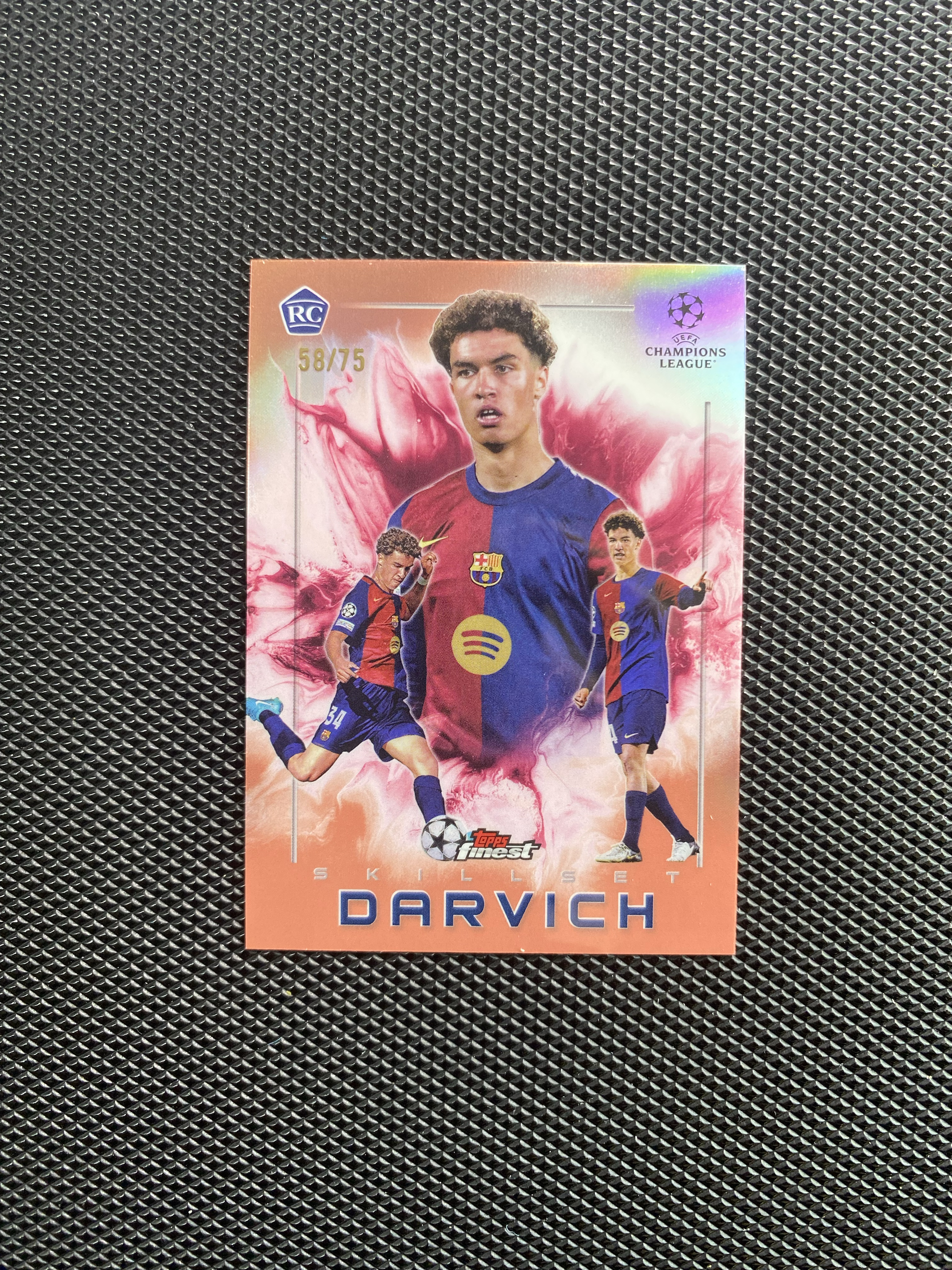 【绝杀拍卖-js249】2025 Topps Finest 欧冠 Noah Darvich 巴塞罗那 新秀RC 达尔维奇 75编 玫瑰金折 最佳技能特卡 卡品如图