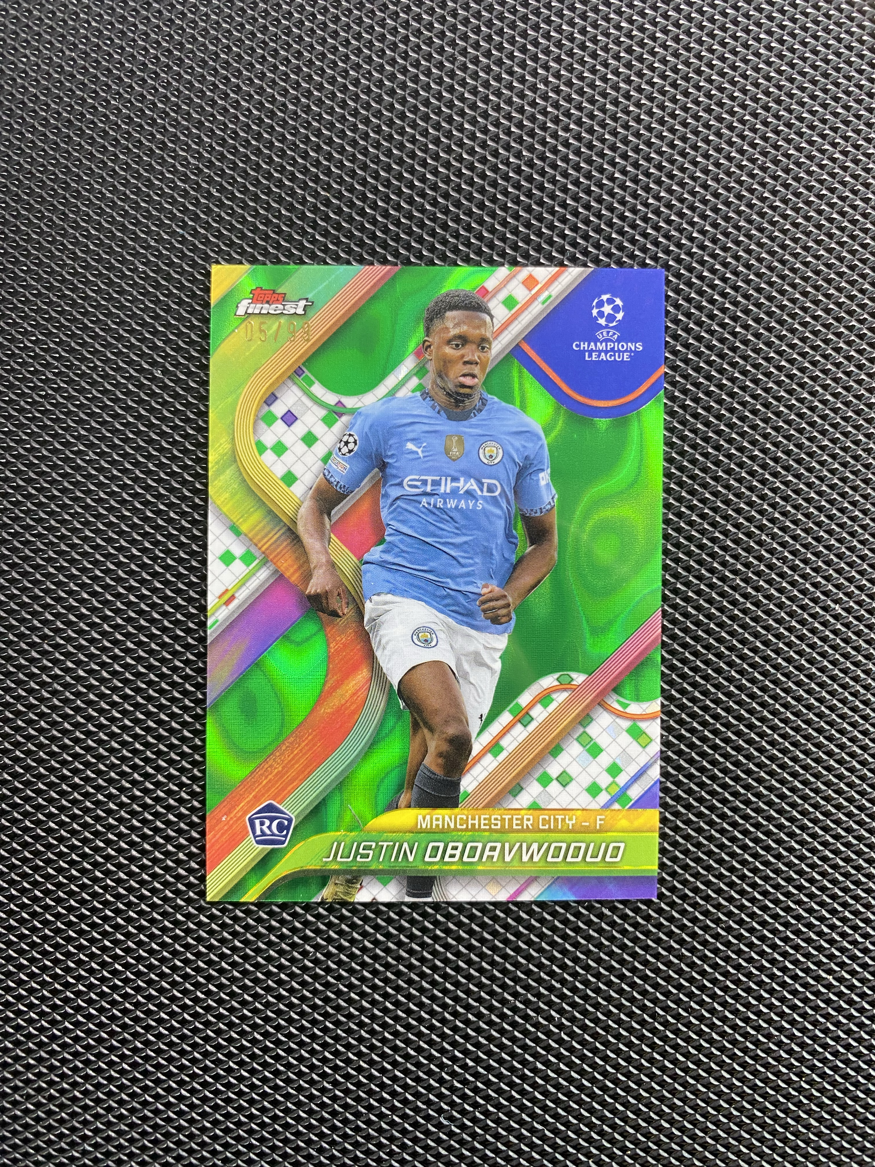 【绝杀拍卖-js249】2025 Topps Finest 欧冠 Justin Oboavwoduo 曼城 新秀RC 贾斯汀 奥博阿沃杜奥 99编 绿熔岩折 卡品如图