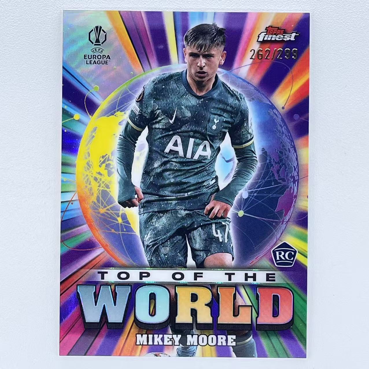 R 2024-25 Topps Finest Mikey Moore RC 米凯 米奇 摩尔 穆尔 299编 紫折 折射 英格兰 热刺 新秀 Top of the World 世界之巅 欧冠 轻印如图 BM176