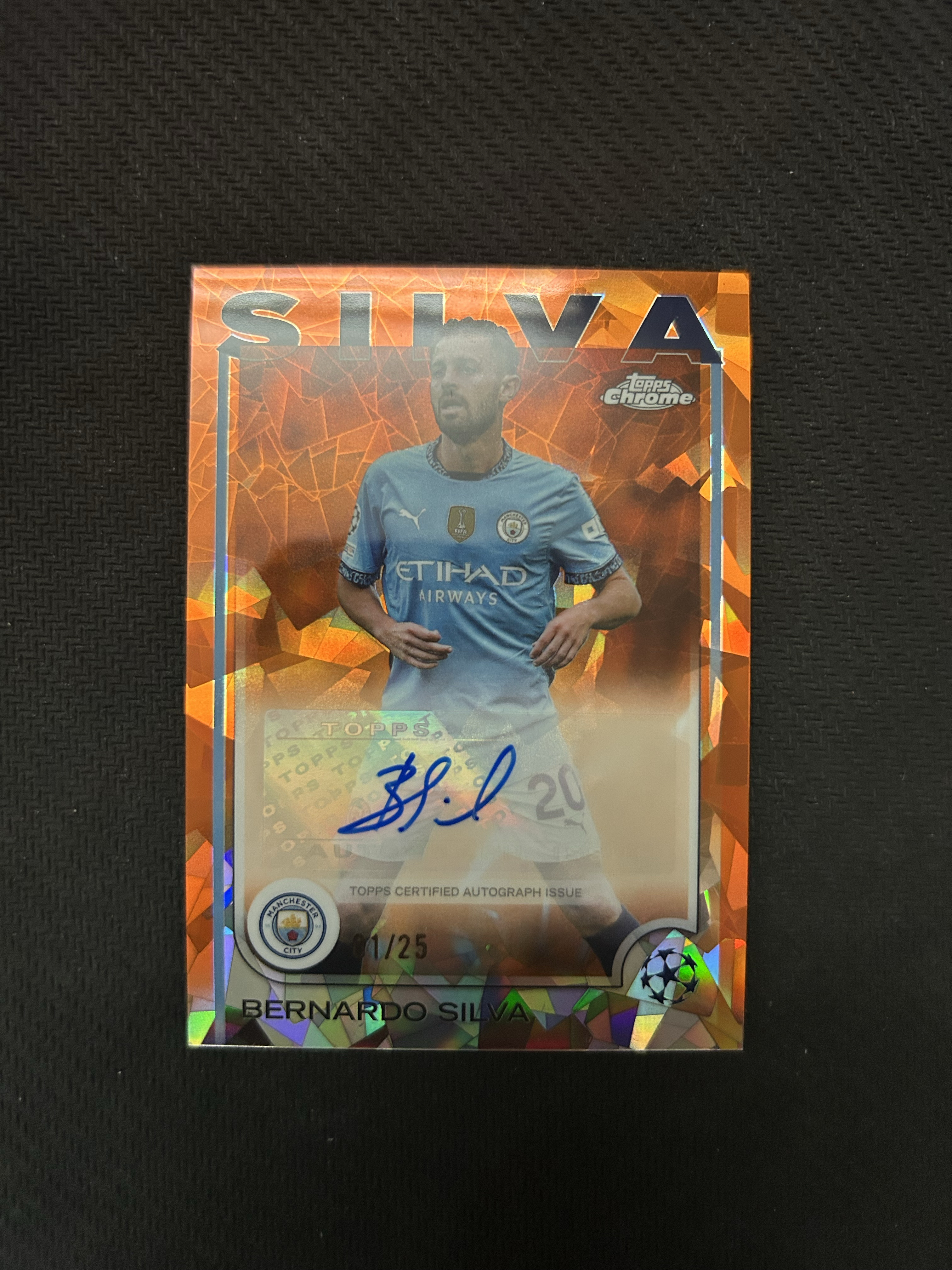 2024-25 Topps Chrome Bernardo Silva 欧战 蓝宝石 贝尔纳多 席尔瓦 B席 25编 首编 橙碎冰折 签字 曼城 葡萄牙 中场核心 实卡精美 专收凑套必备 卡品如图!