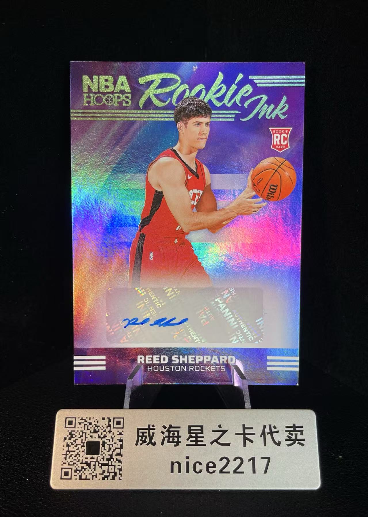 2024-25 Panini Hoops Reed Sheppard RC 【威海星之卡】火箭探花秀 里德谢泼德 RA 新秀 INK签 签字 银折射 贴签 瑕疵看图狮子1