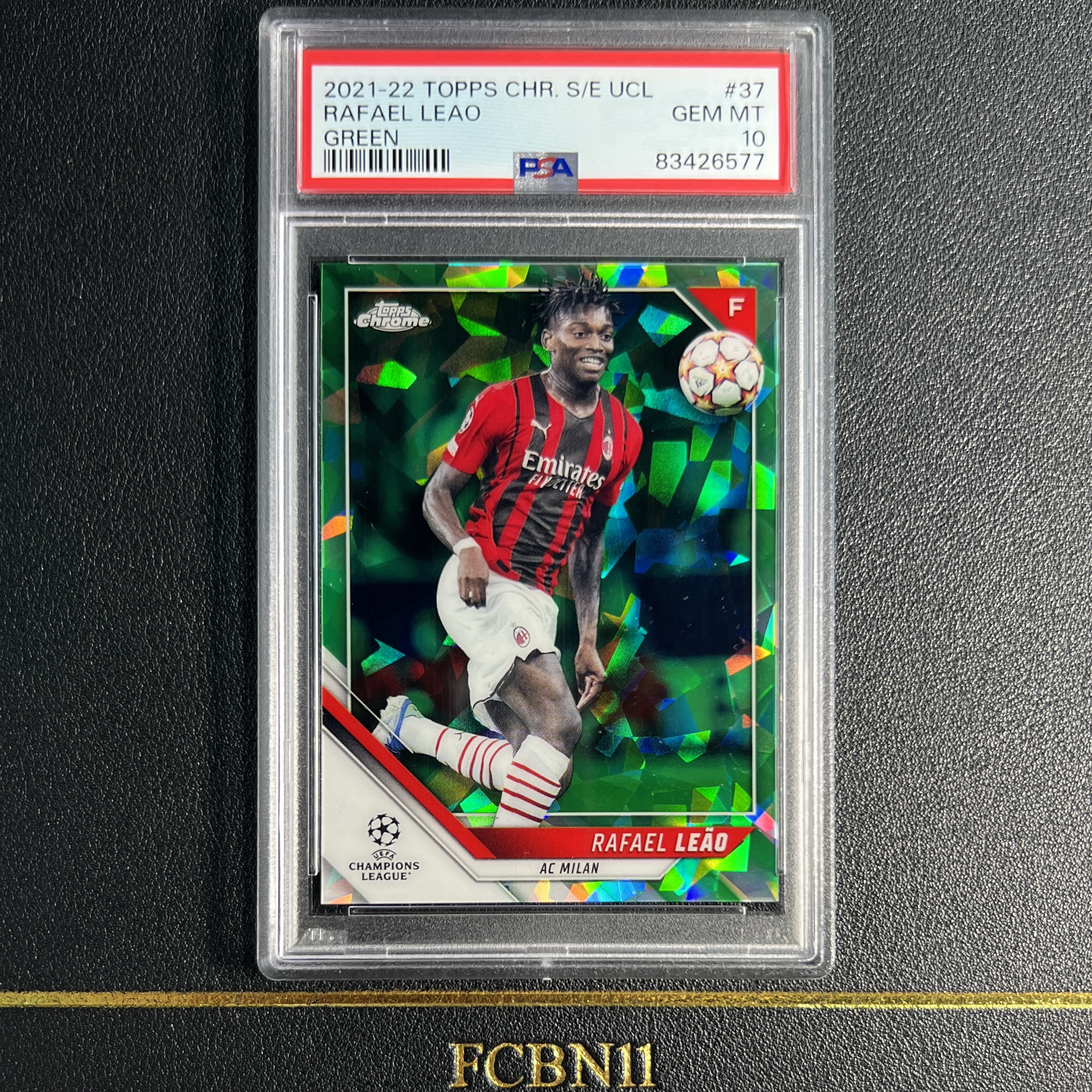 【FCB拍卖】2021-22 TOPPS CHROME RAFAEL LEAO 拉斐尔 莱奥 75编 16/75 绿碎冰 绿宝石 PSA10分 POP仅2 AC米兰 葡萄牙 欧冠 蓝宝石{zxd67}FCBN11