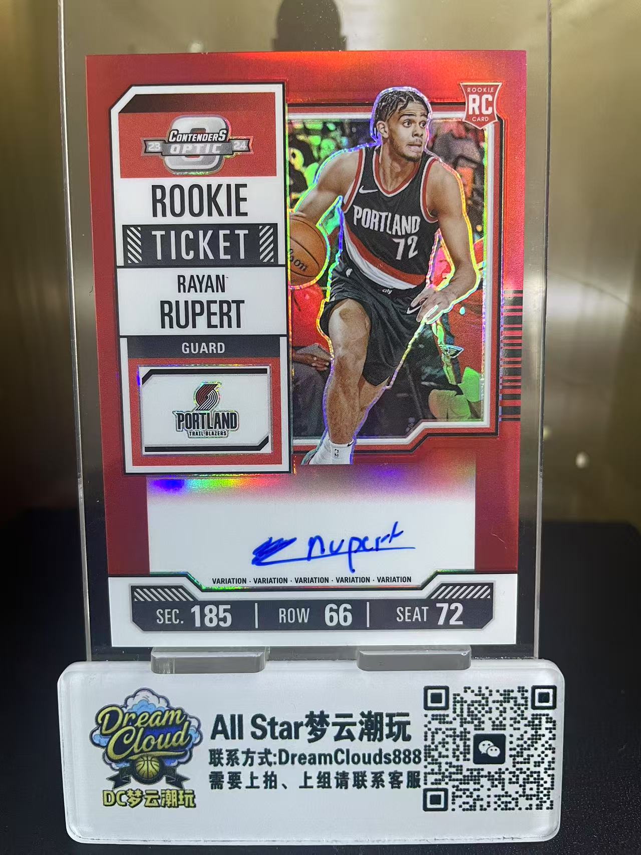 2023-24 Panini Contenders Optic Rayan Rupert RC 【DC梦云潮玩】球票OP系列 开拓者 新秀 拉扬 吕佩尔 /99编 签字卡签 红折 折射 卡品如图 莎