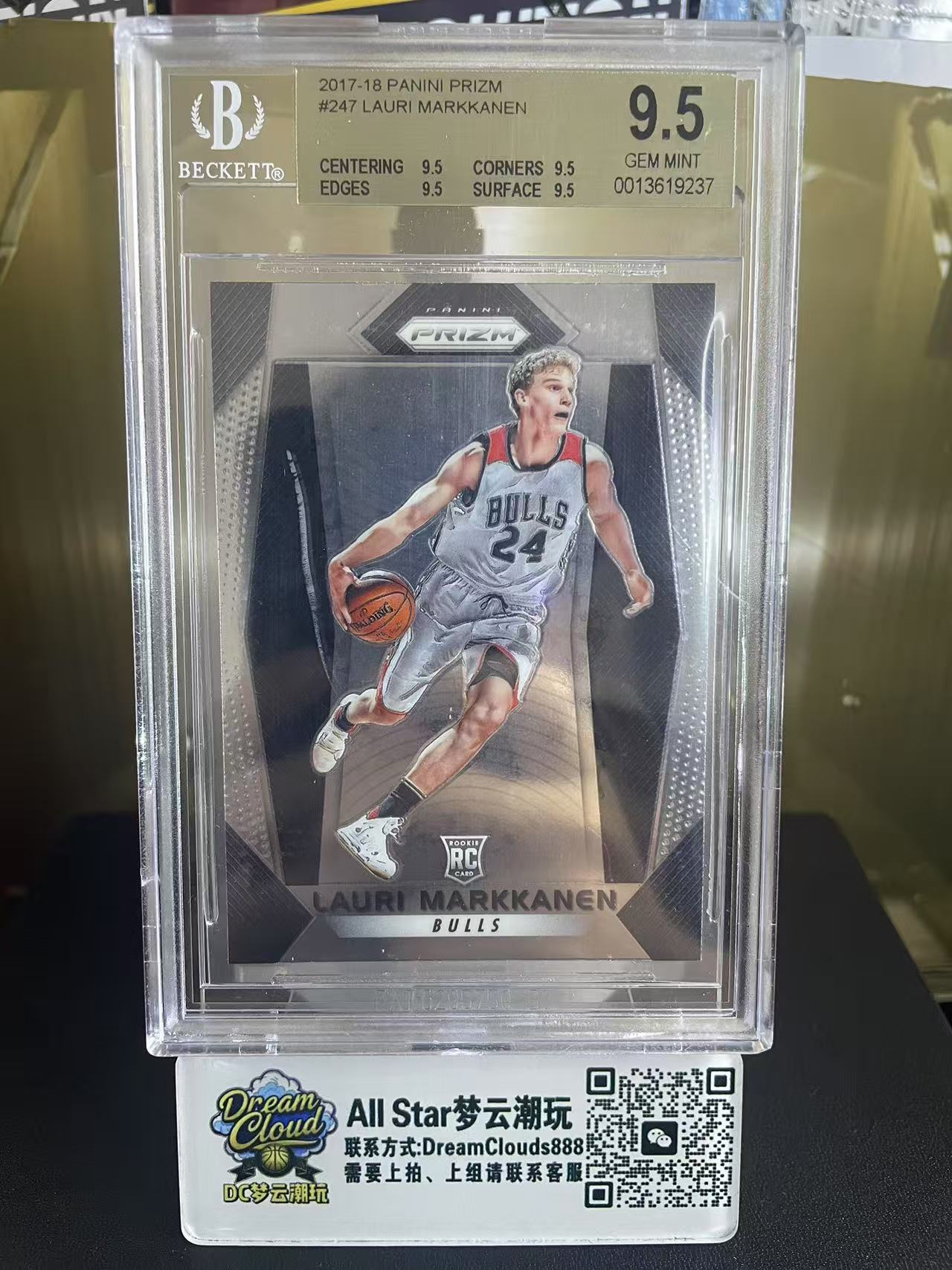 2017-18 Panini Prizm Lauri Markkanen RC 【DC梦云潮玩】PZ系列 芝加哥公牛 新秀 劳里 马尔卡宁 新秀Base 评级卡 BGS9.5分 金标 卡品如图 莎