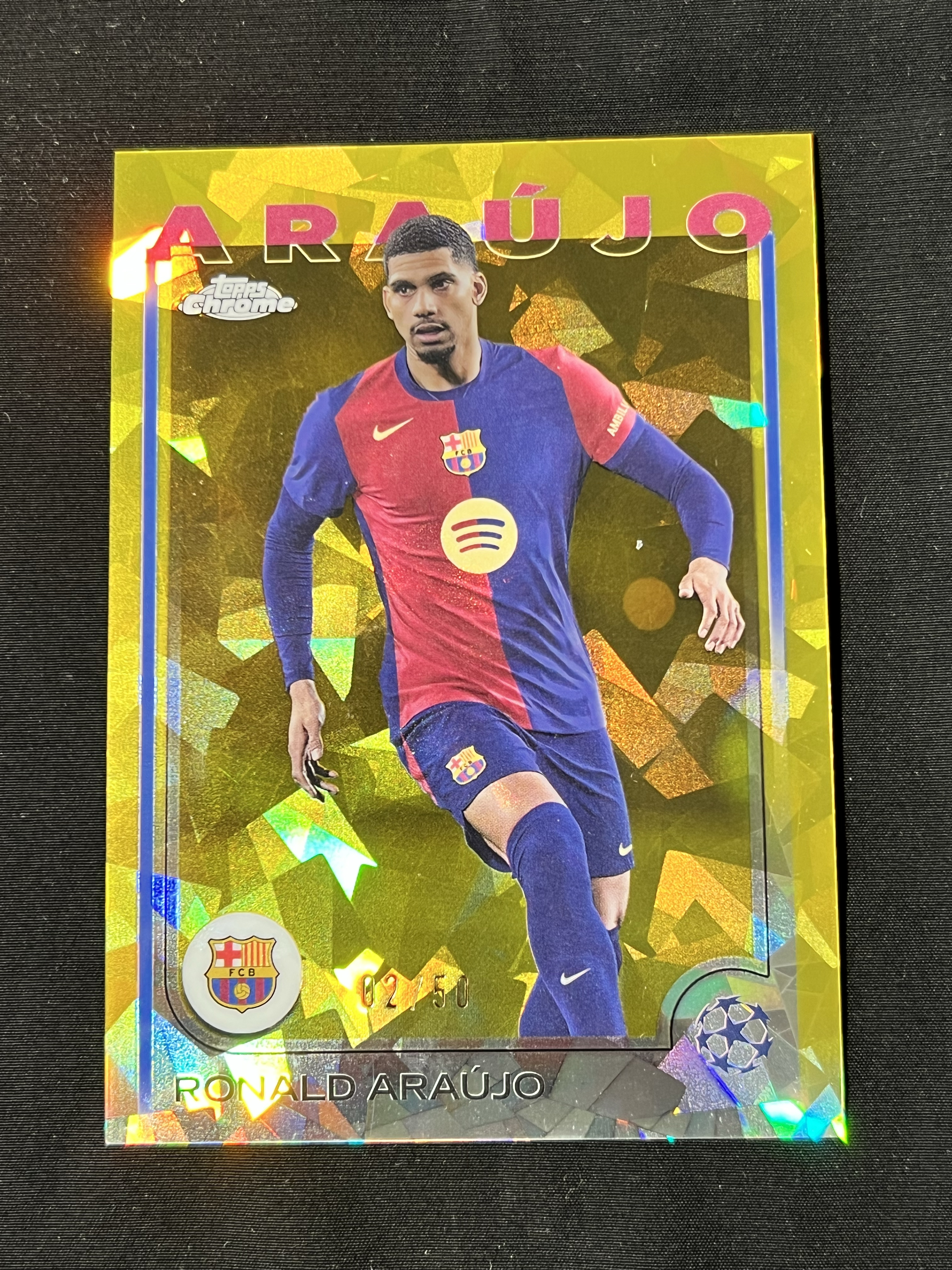 2025 Topps Chrome Ronald Araujo 欧冠TC 蓝宝石 巴塞罗那 巴萨 阿劳霍 50编 金碎冰折 收藏必备 胖