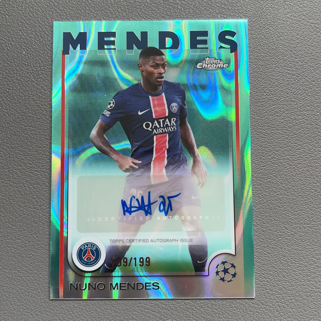 2024-25 Topps Chrome Nuno Mendes 2025 欧冠TC 努诺门德斯 199编 青熔岩折 签字 完美墨迹 巴黎圣日耳曼 大巴黎 葡萄牙 世一卫 实卡精美 收藏必备