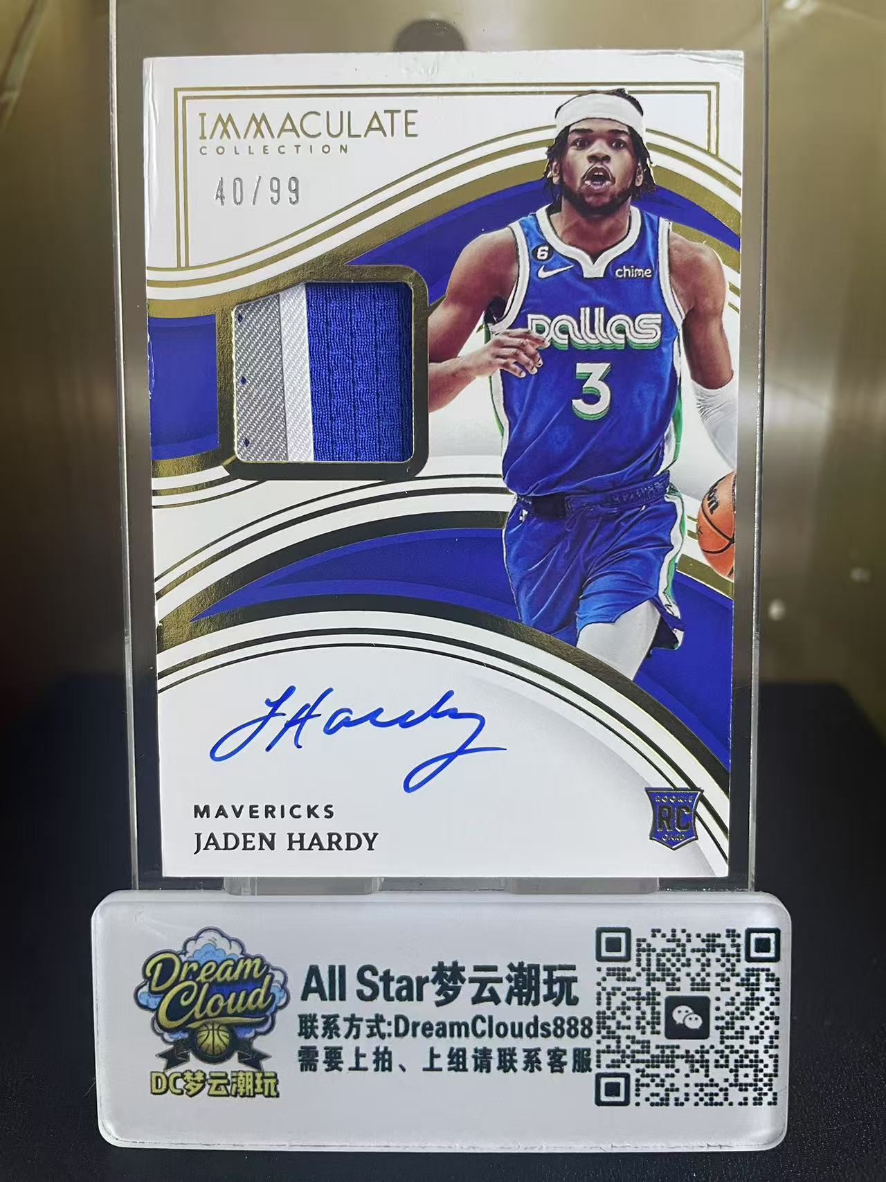 2022-23 Panini Immaculate Jaden Hardy RC 【DC梦云潮玩】爱咪咪系列 独行侠 新秀 杰登 哈迪 /99编 签字卡签 三色Patch 球衣切割物料 卡品如图 莎