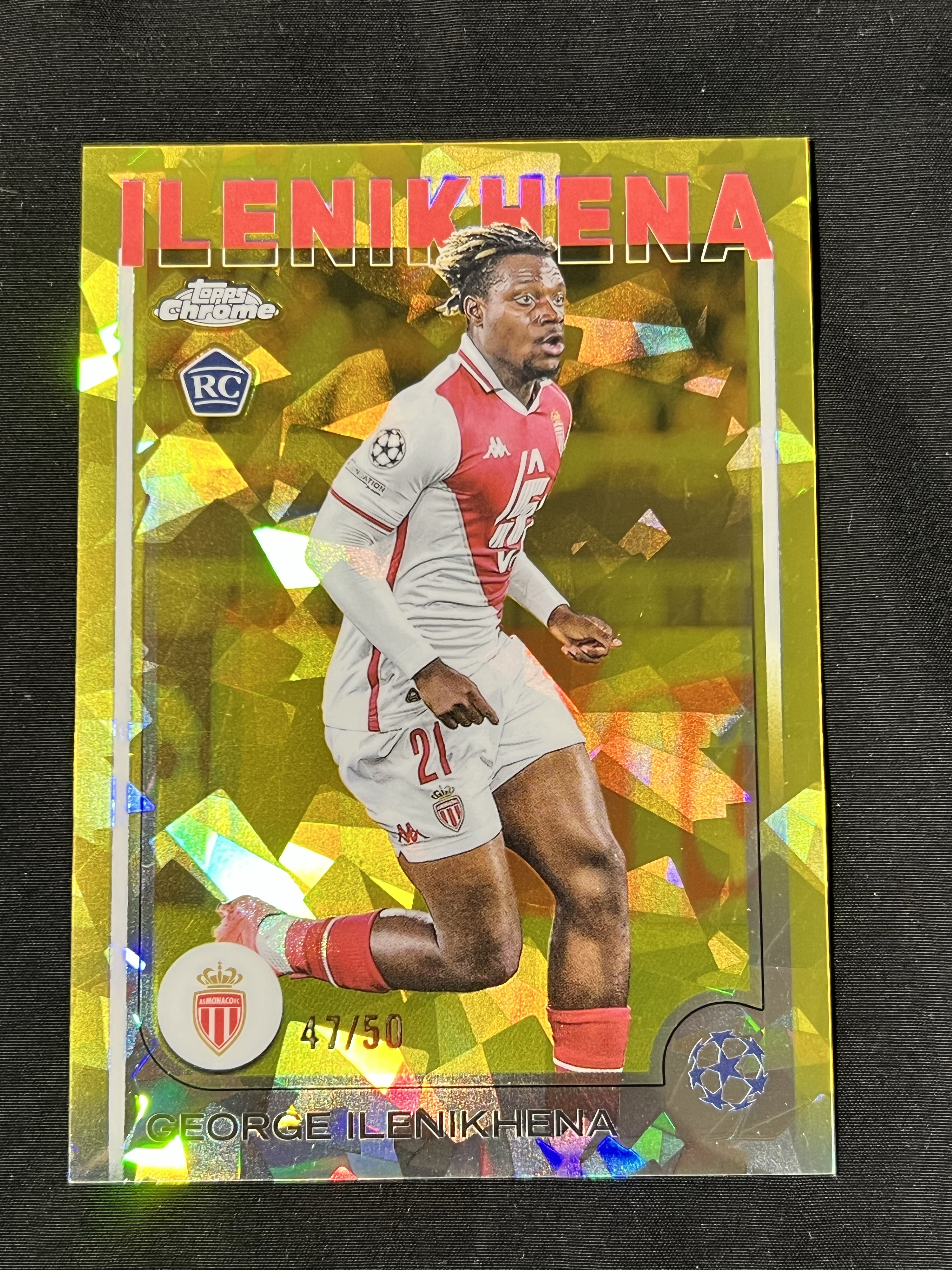 2025 Topps Chrome George Ilenikhena RC 欧冠TC 蓝宝石 摩纳哥 新秀 伊莱尼赫纳 伊伦尼赫纳 50编 金碎冰折 收藏必备 火神