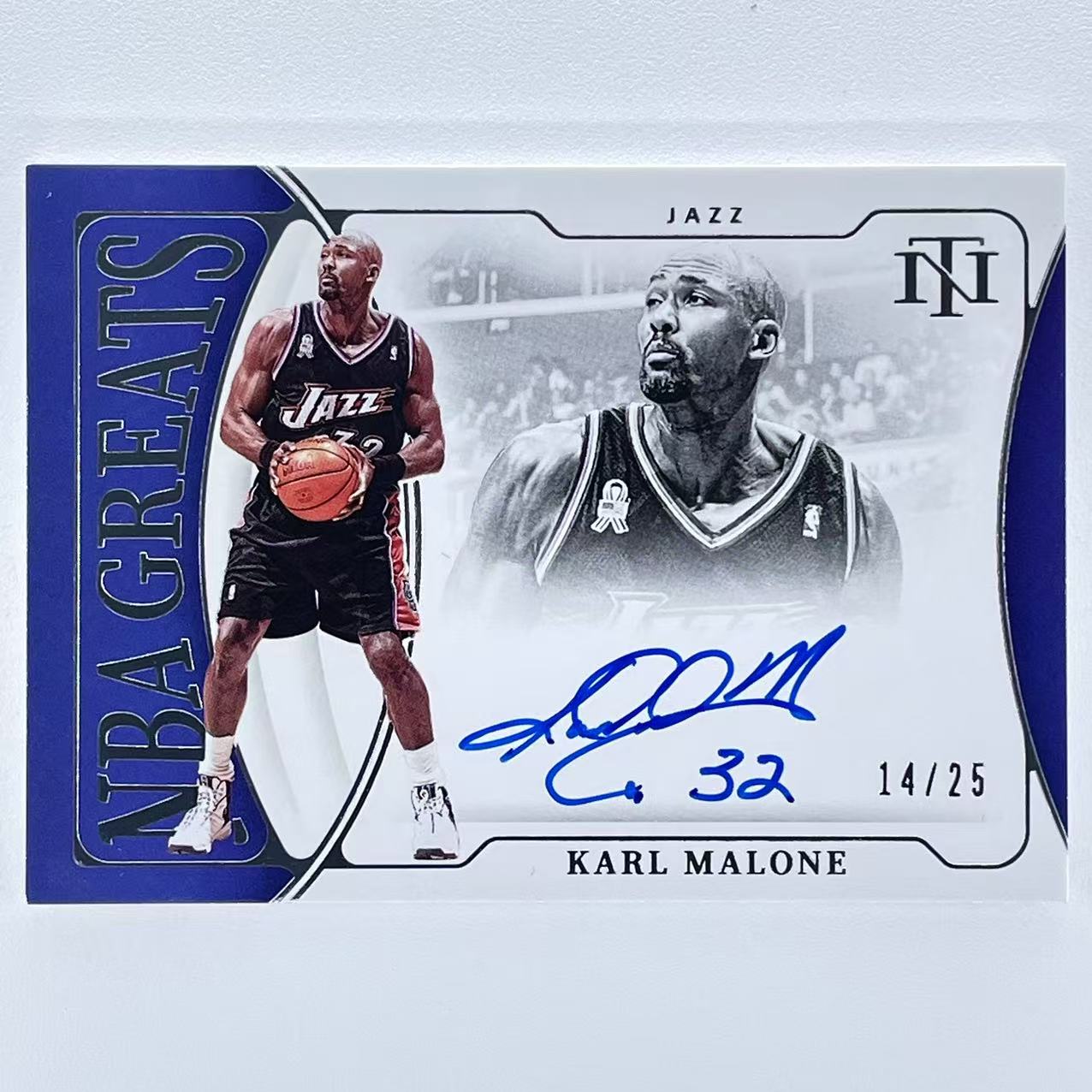 V+ 2021-22 Panini National Treasures Karl Malone 卡尔 马龙 14/25编 签字卡签 NBA Greats 伟大签 国宝 两届常规赛MVP 名人堂 爵士名宿 50大巨星 轻印如图 篮球 千途#