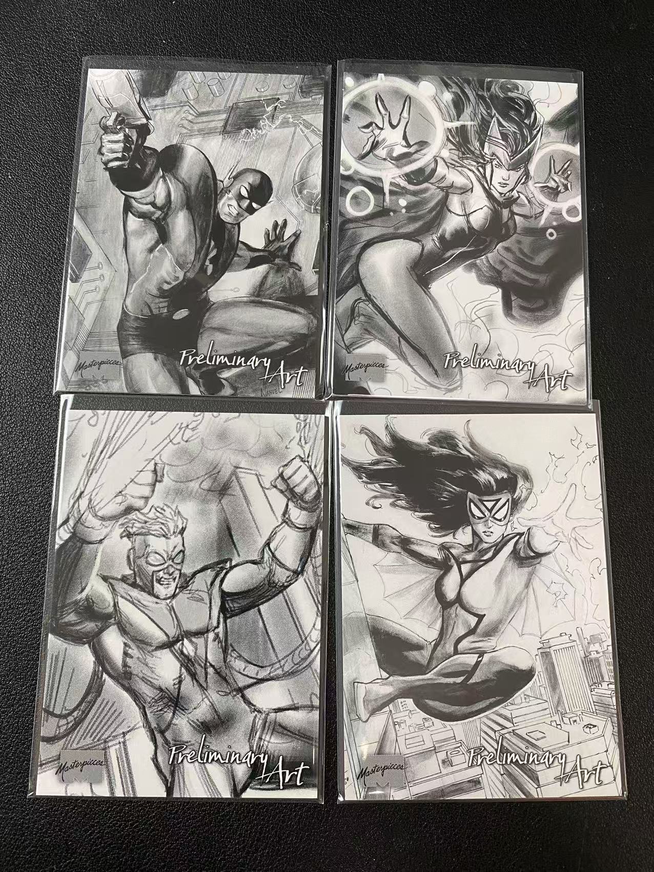 2024 SkyBox Marvel (MCU) Masterpieces Nahuel Grego 黑白线稿特卡 LOT 绯红女巫 蜘蛛女侠 黄衫侠 边损通病【-扣然】R2