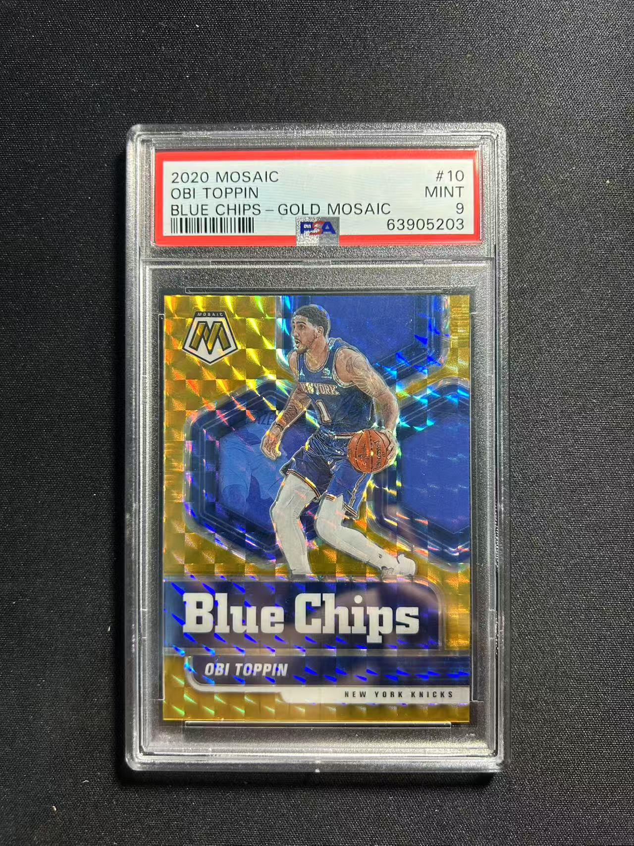 2020-21 Panini Mosaic Obi Toppin RC 马赛克10编 尼克斯 步行者 新秀RC 奥比 托平 10编 金折 PSA9 扣篮王{爱跳跳}