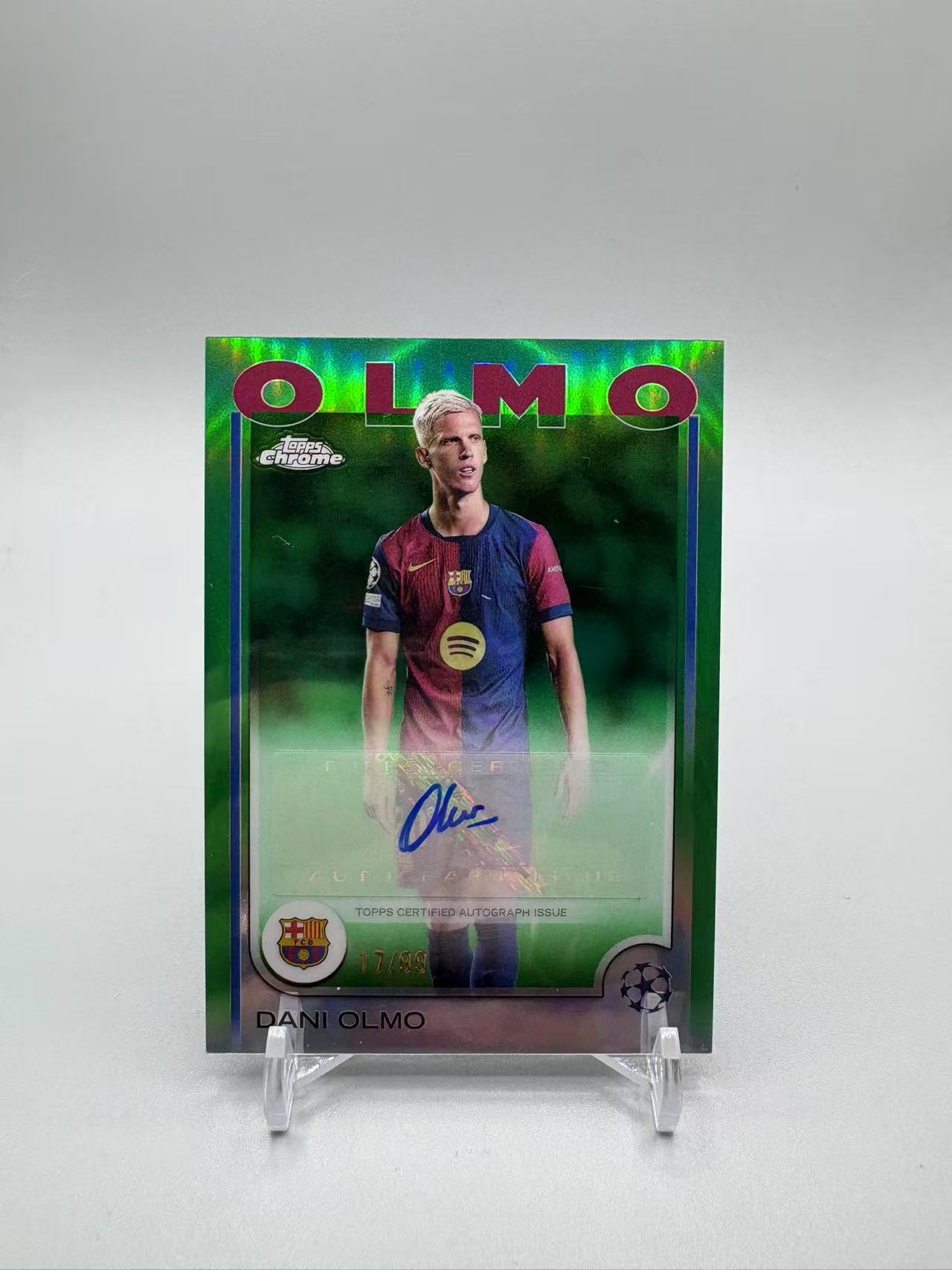 2024-25 Topps Chrome Dani Olmo 【灰灰代拍】chrome 欧冠 达尼 奥尔默 /99编 绿折 签字 巴萨 西班牙 睡觉