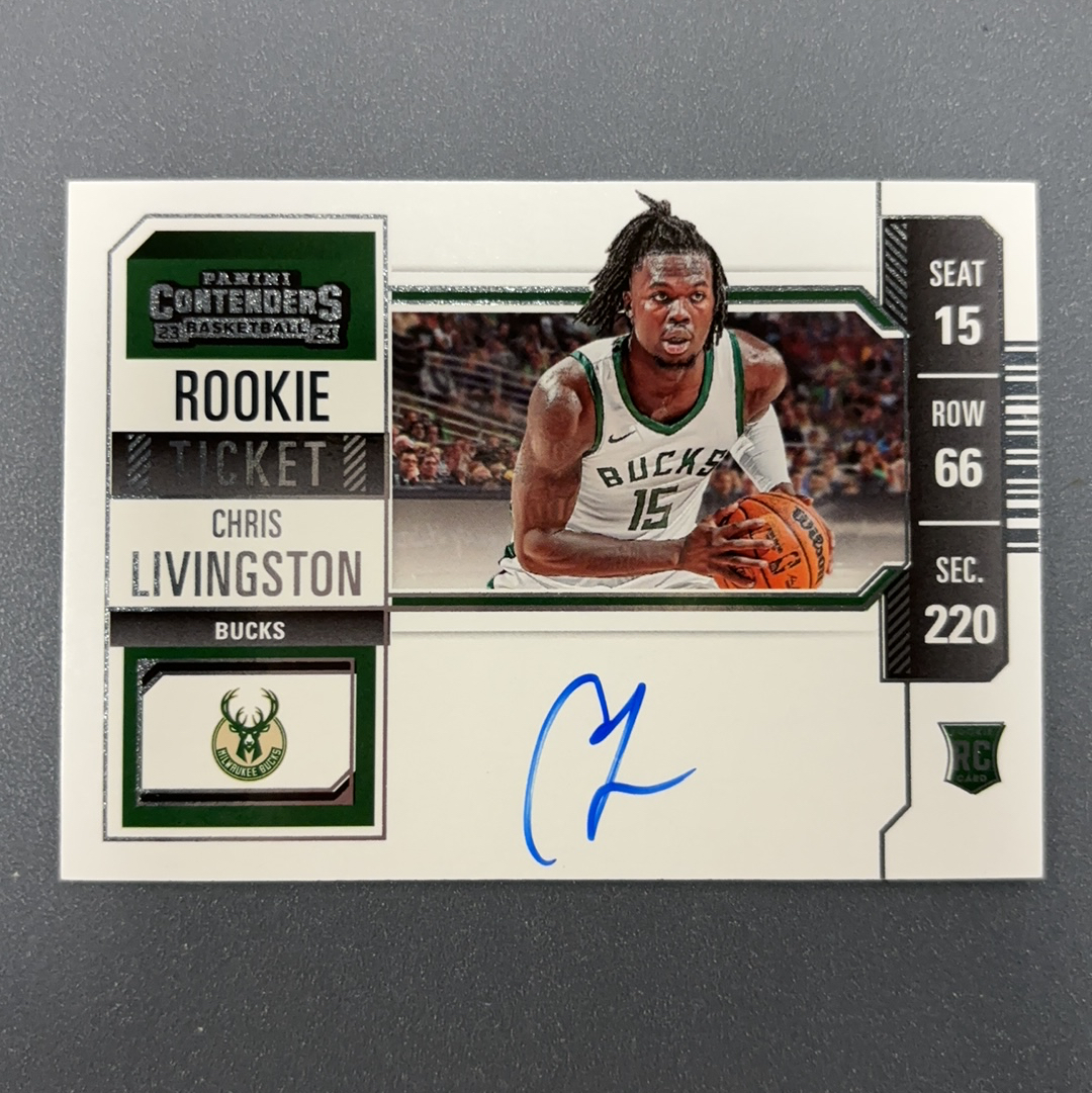 2023-24 Panini Contenders Chris Livingston RC 球票 雄鹿 克里斯 利文斯顿 新秀 变化版 签字 卡签 卡角微瑕 实卡精美 卡品如图(街篮)