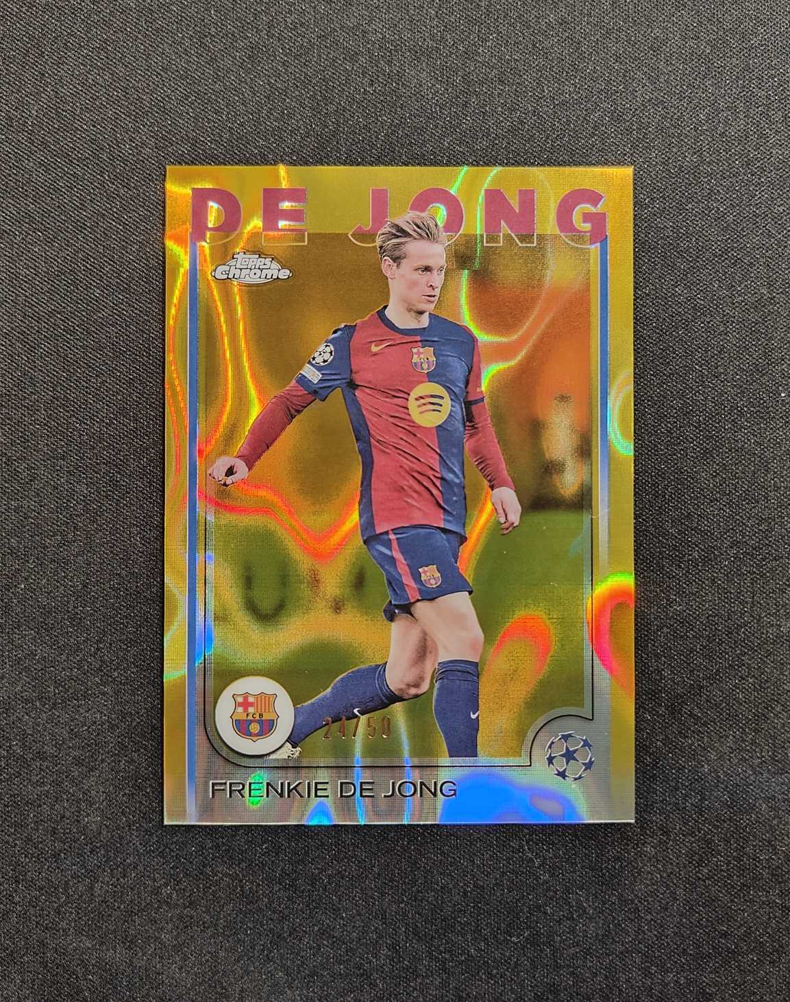 2024-25 Topps Chrome UCC 欧战足球 弗兰基 德容 De Jong 24/50编 金熔岩 折射 巴萨 巴塞罗那 收藏必备 G91